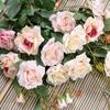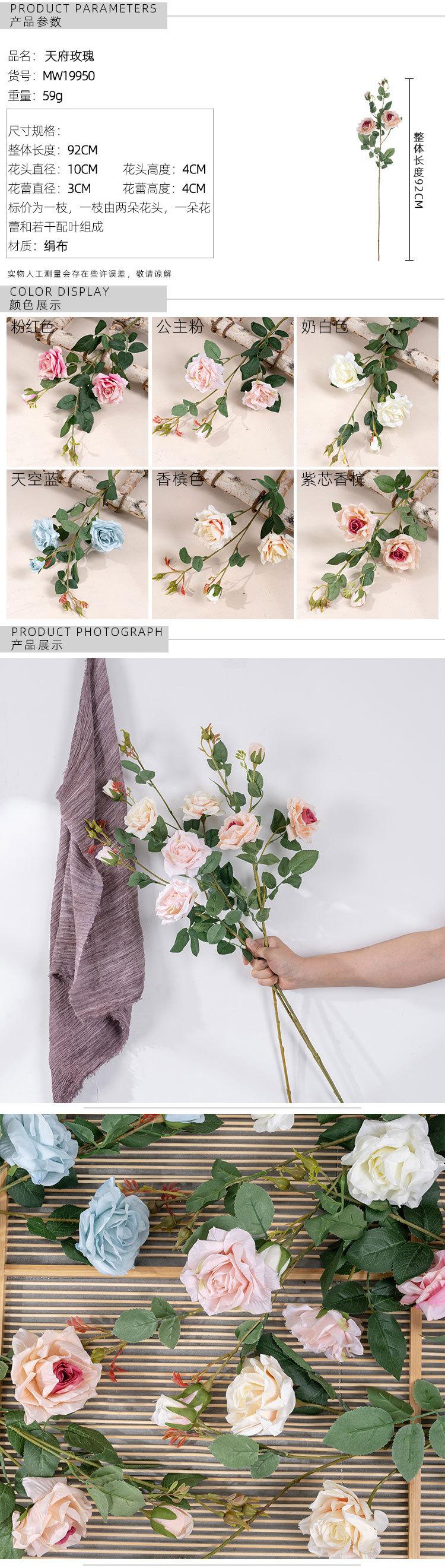 Fabricante de flores artificiais de rosas com toque úmido colado, decoração para casa, buquê de casamento, flor artificial de parede MW59991