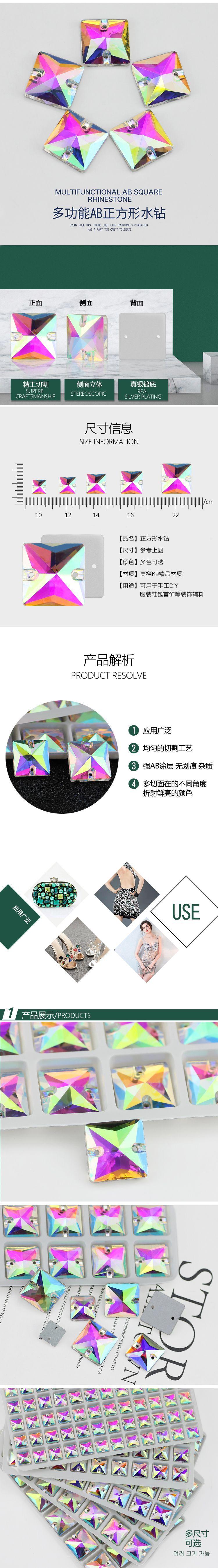 Nome do produto: diamante quadrado banhado a prata costurado à mão com dois furos