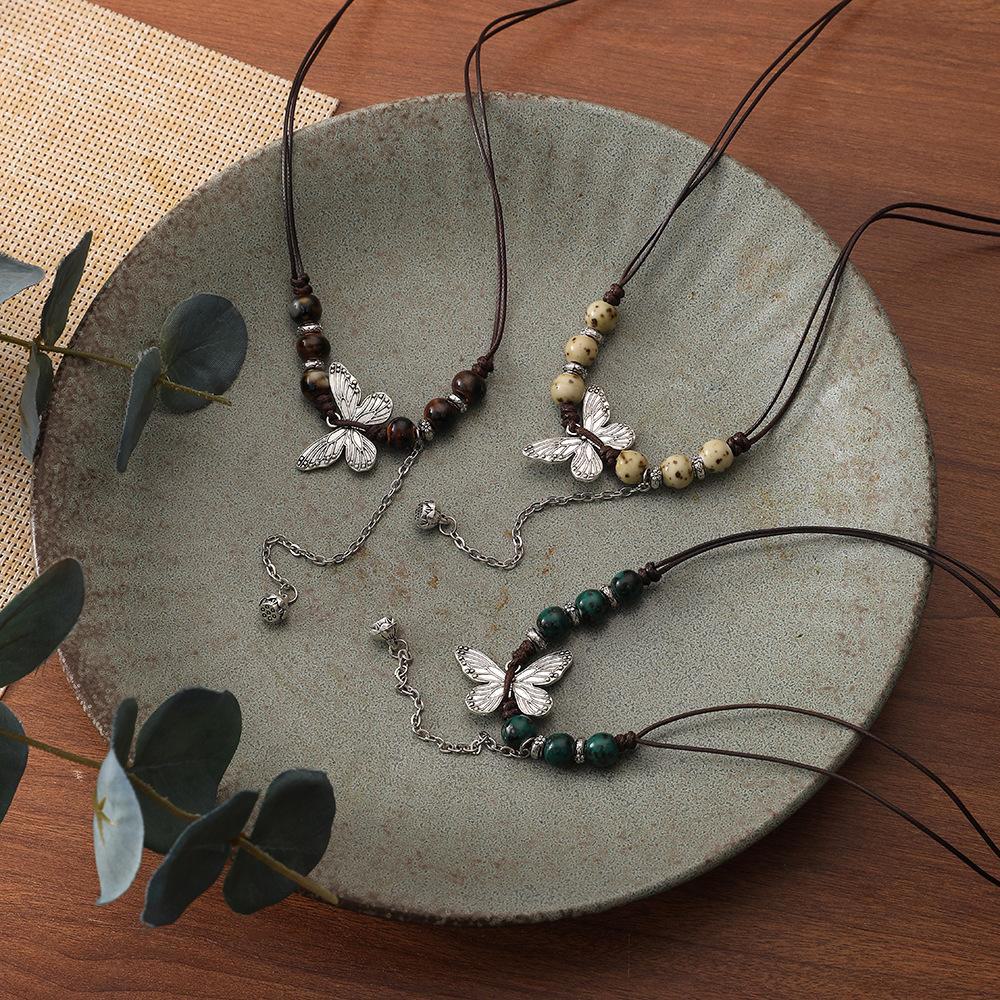 Novo estilo étnico chinês cadeia de camisolas de cerâmica ornamentos de estilo antigo das mulheres literário estilo chinês acessórios borboleta colar mulheres atacado