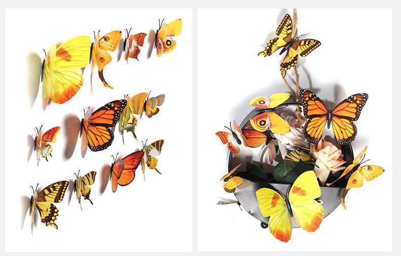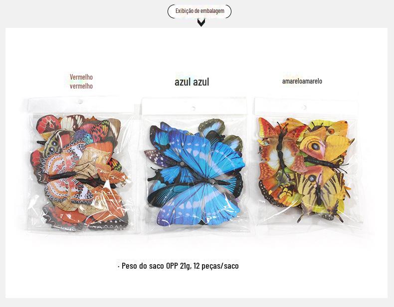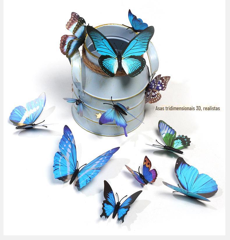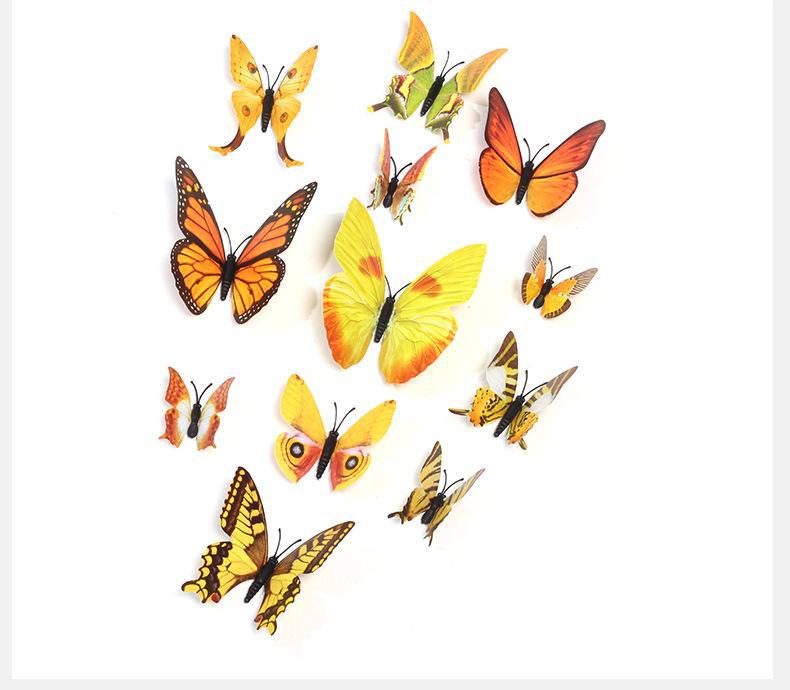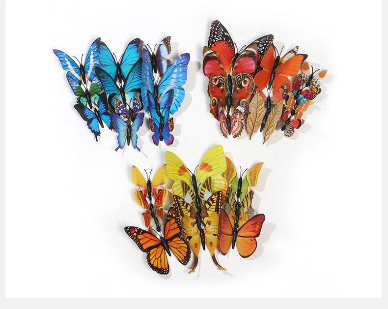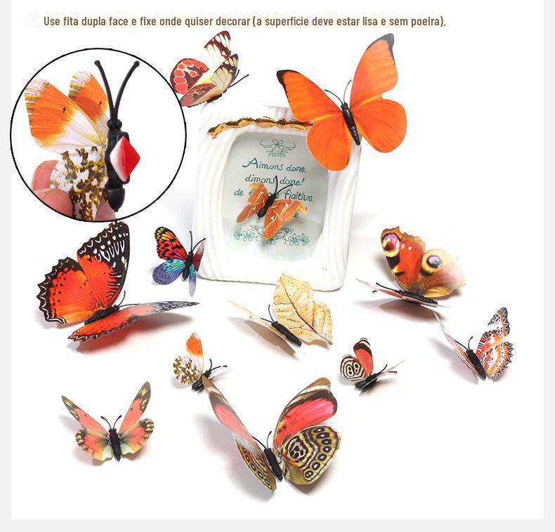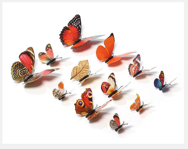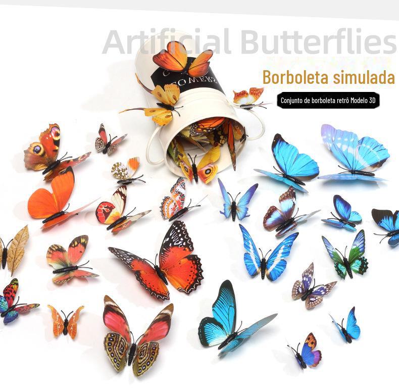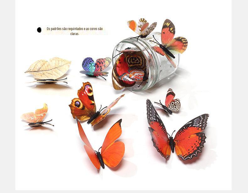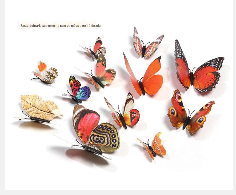 Borboleta tridimensional de camada única, simulação de PVC de plástico, 12 conjuntos de adesivos de parede de borboleta criativa retrô para casa