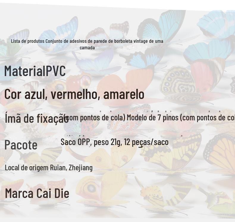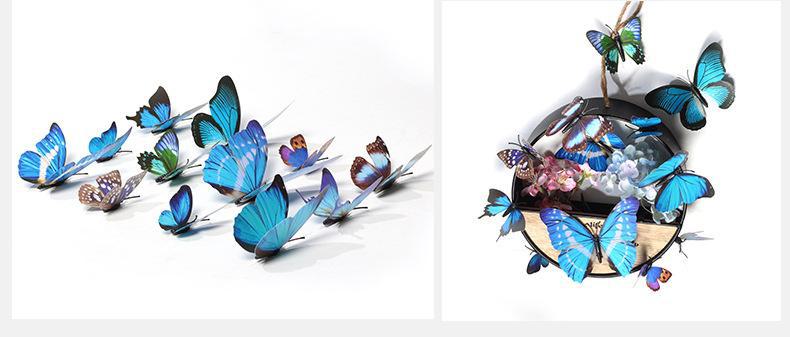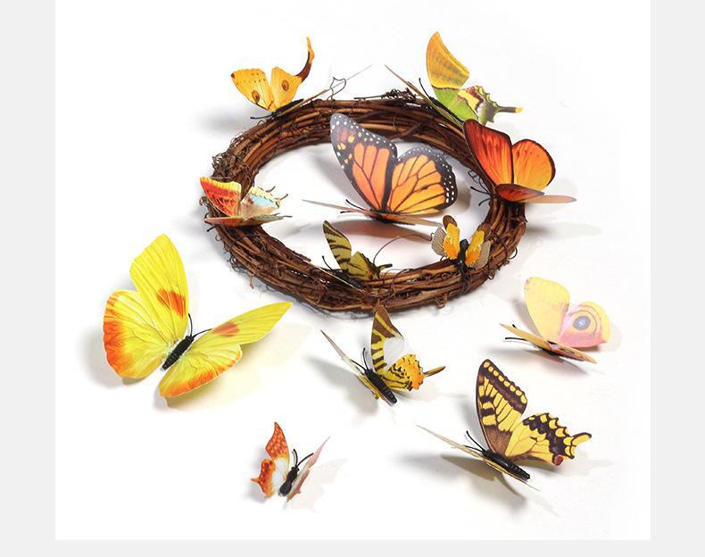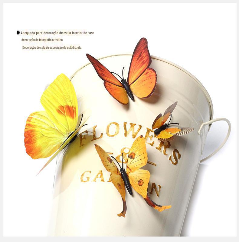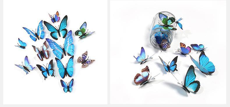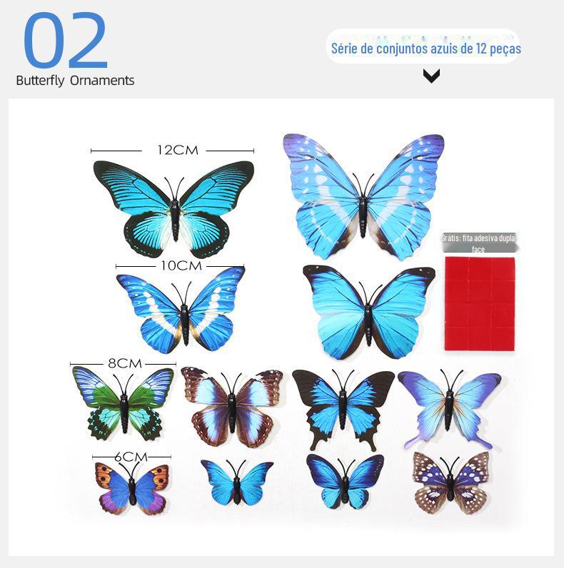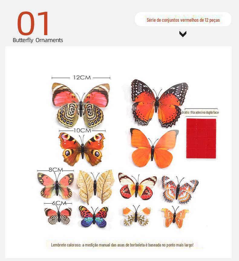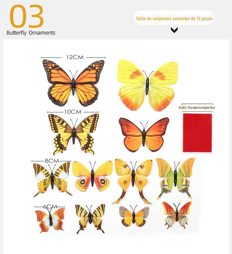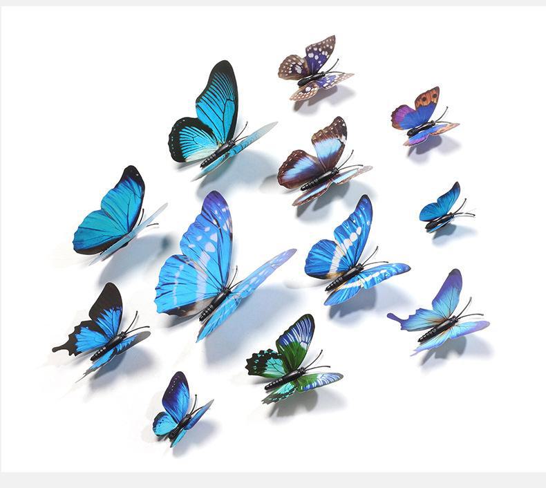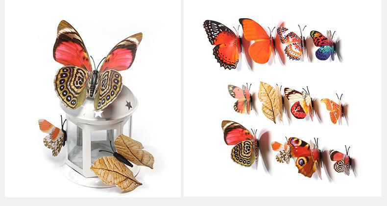 Borboleta tridimensional de camada única, simulação de PVC de plástico, 12 conjuntos de adesivos de parede de borboleta criativa retrô para casa