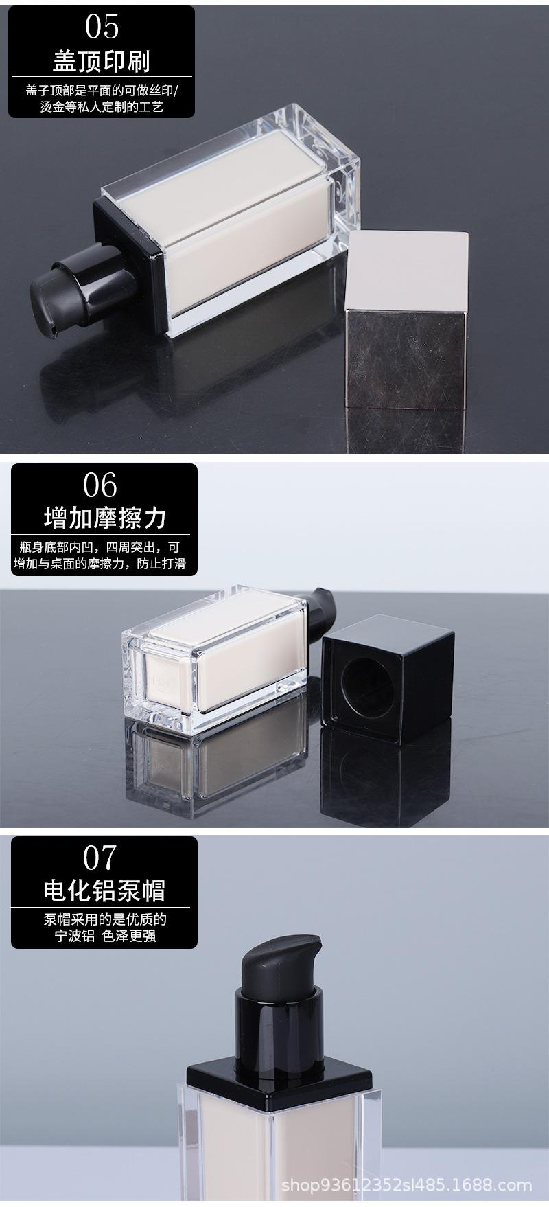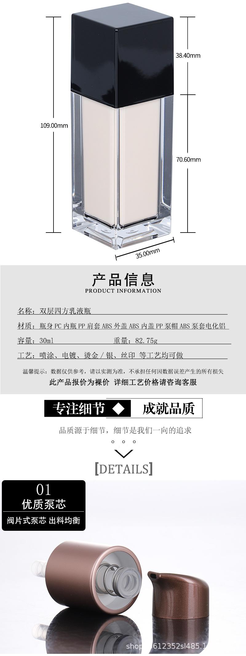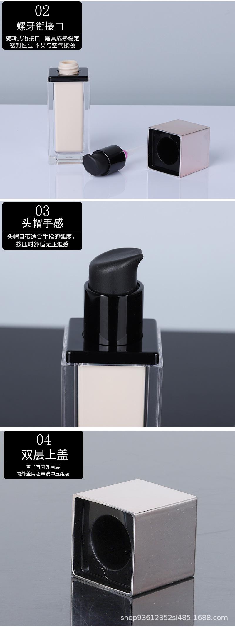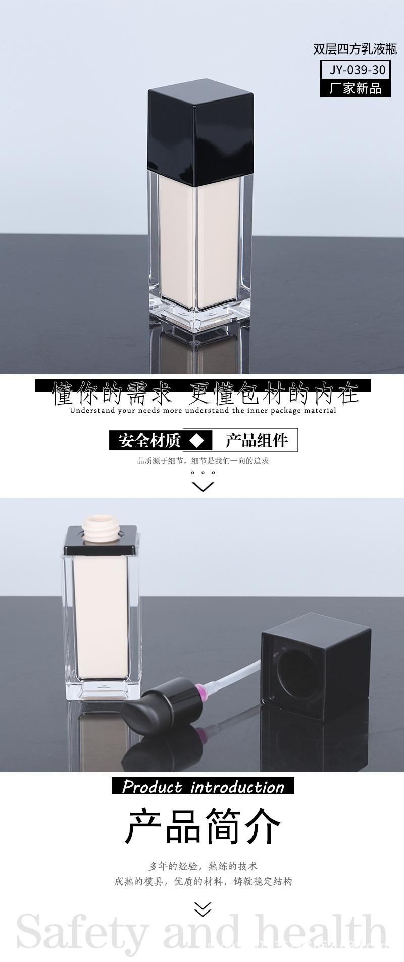 Nova listagem ~ novo 30ml quadrado duplo frasco de loção maquiagem fundação isolamento frasco de creme materiais de embalagem Guangzhou