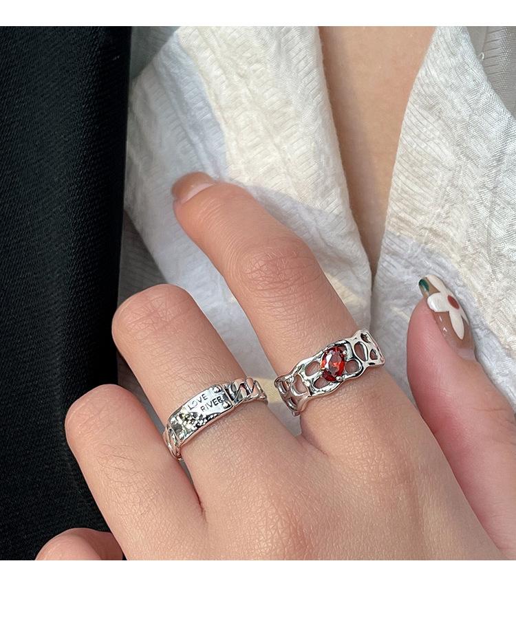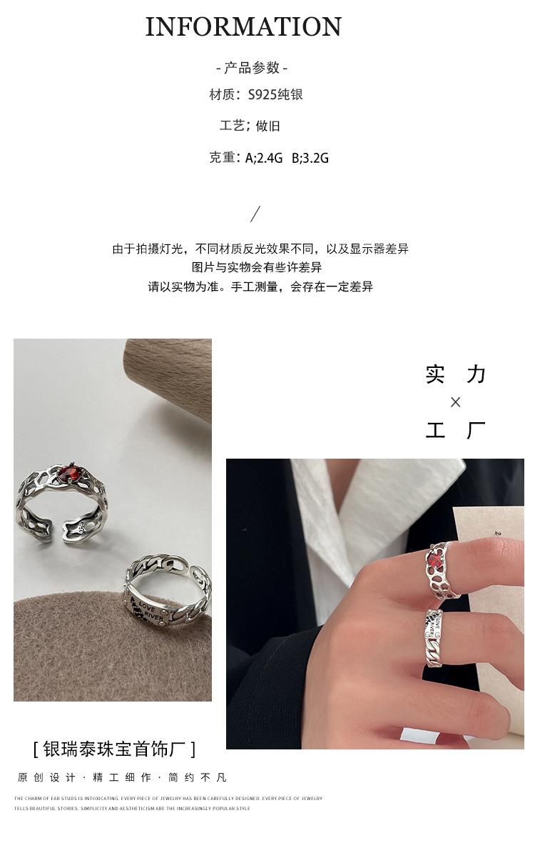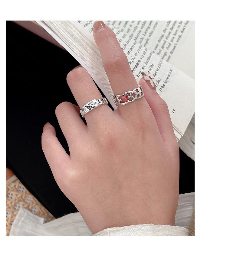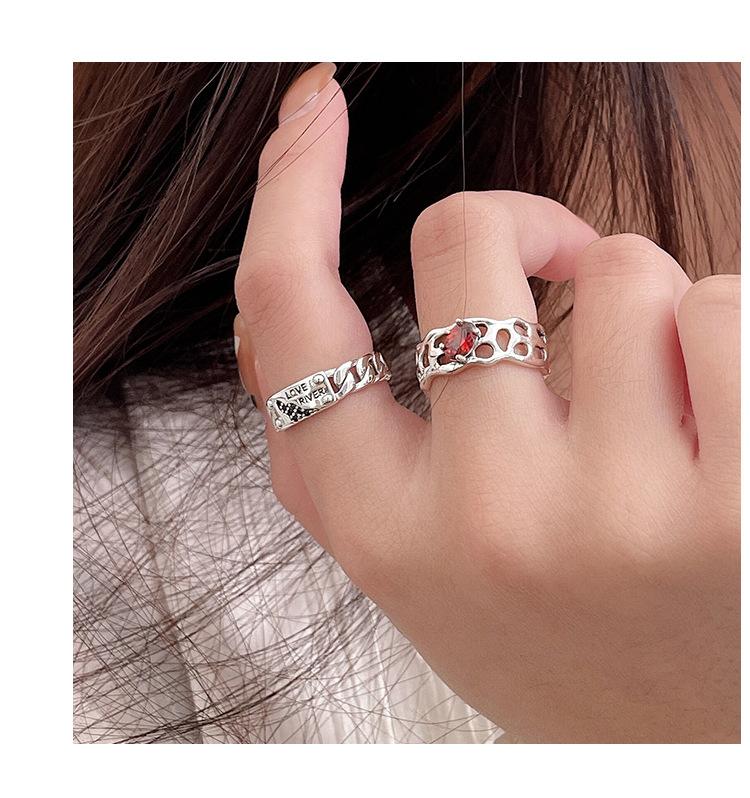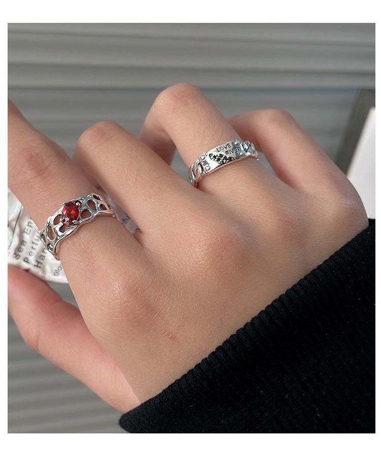 Prata Ruitai s925 prata esterlina vermelho zircão letra anel nicho feminino design de moda aberta personalidade Alto sentido