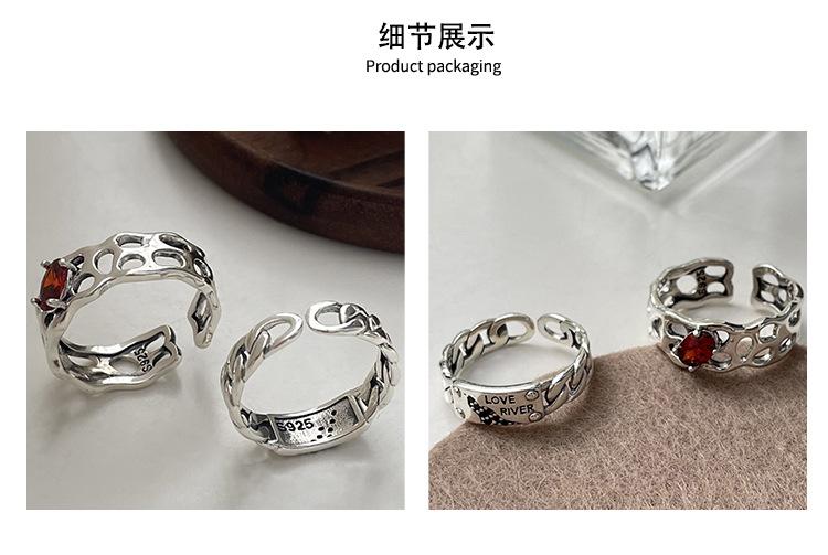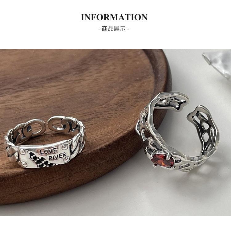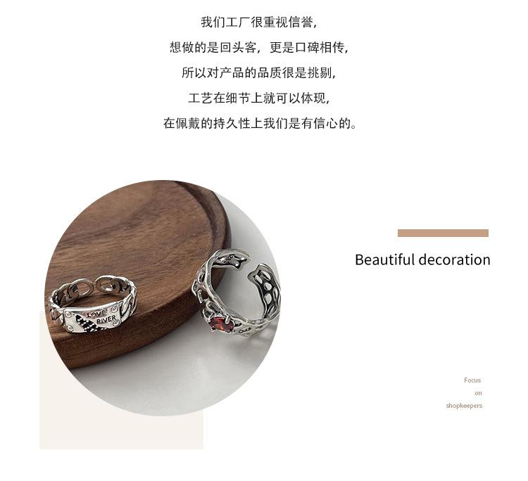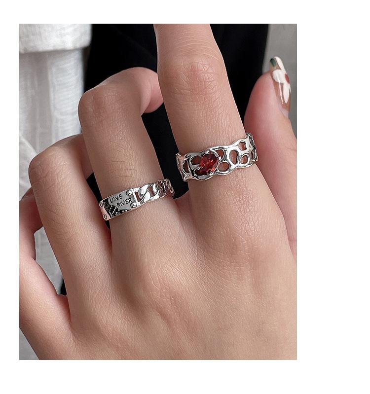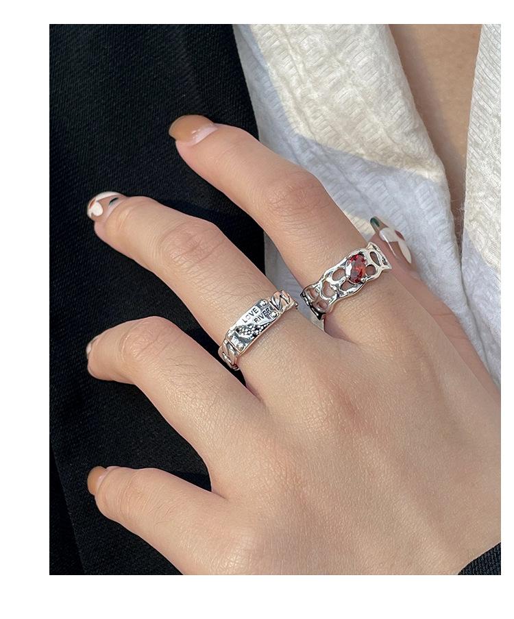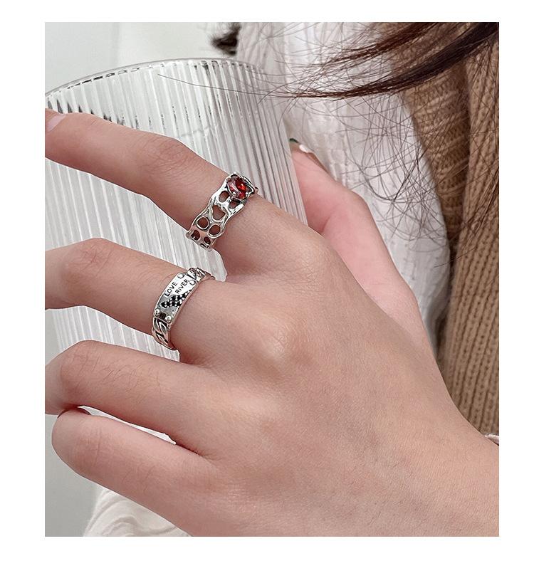 Prata Ruitai s925 prata esterlina vermelho zircão letra anel nicho feminino design de moda aberta personalidade Alto sentido