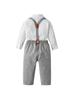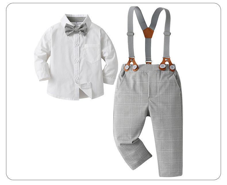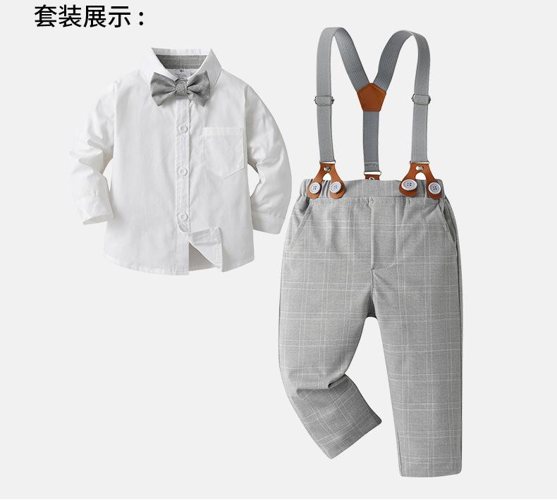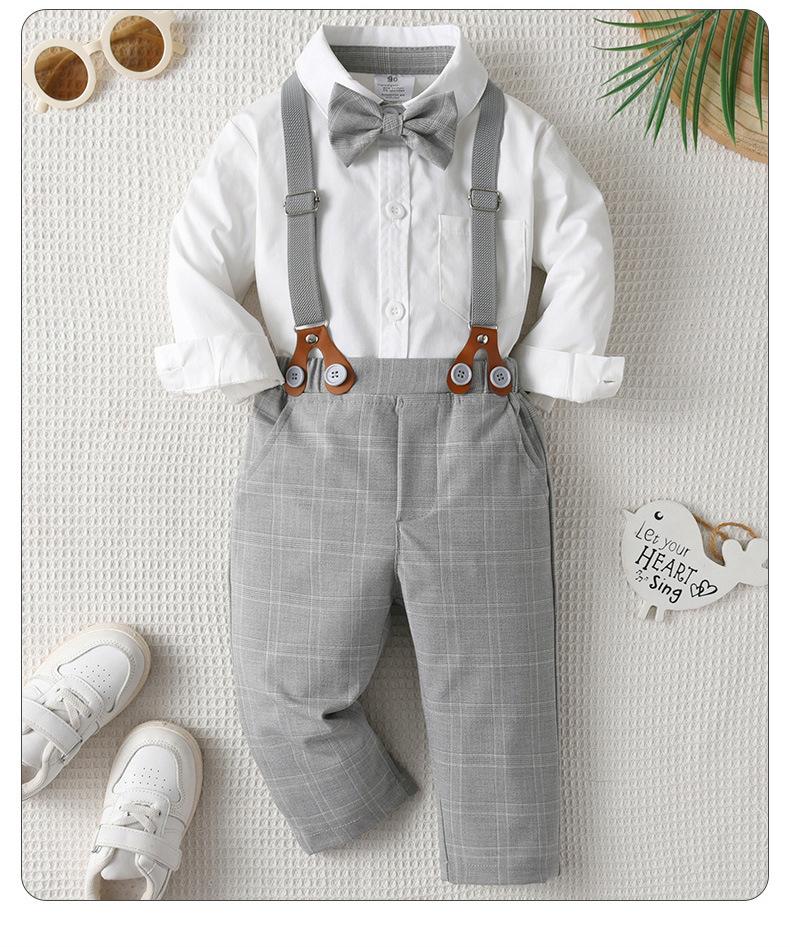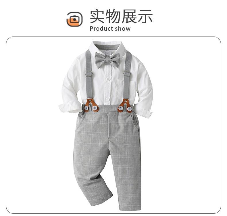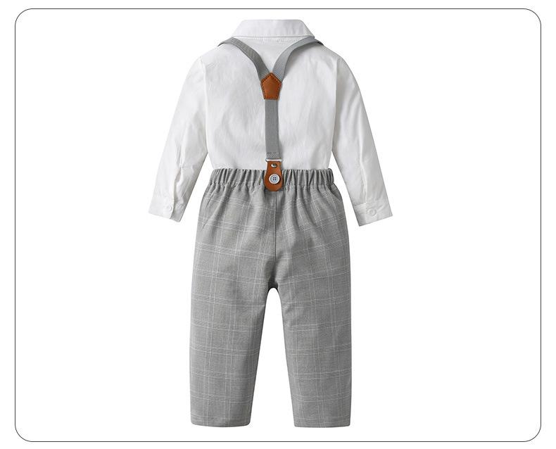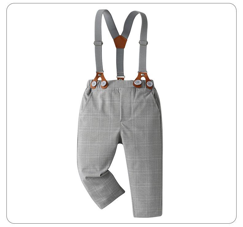 80 jardas-90 jardas-100 jardas-110 jardas-120 jardas-130 jardas Comércio exterior roupas infantis primavera e outono estilo cavalheiro vestido menino outono roupas bebê xadrez macacão três peças terno infantil