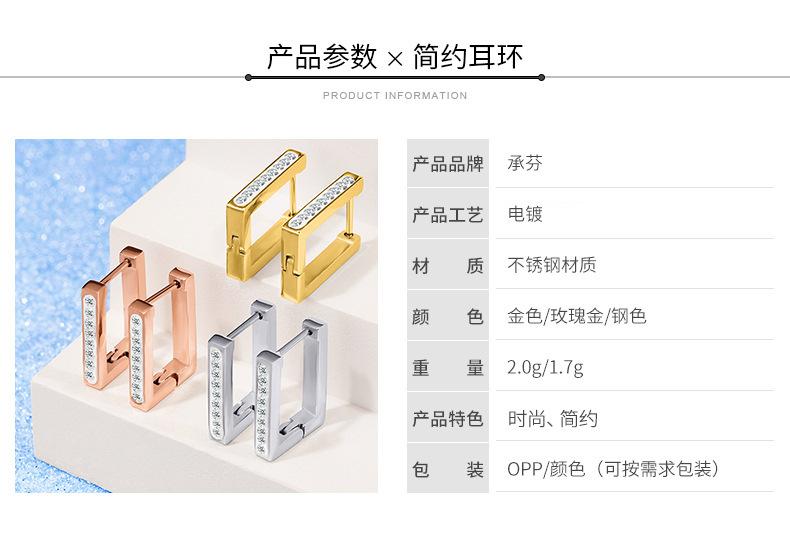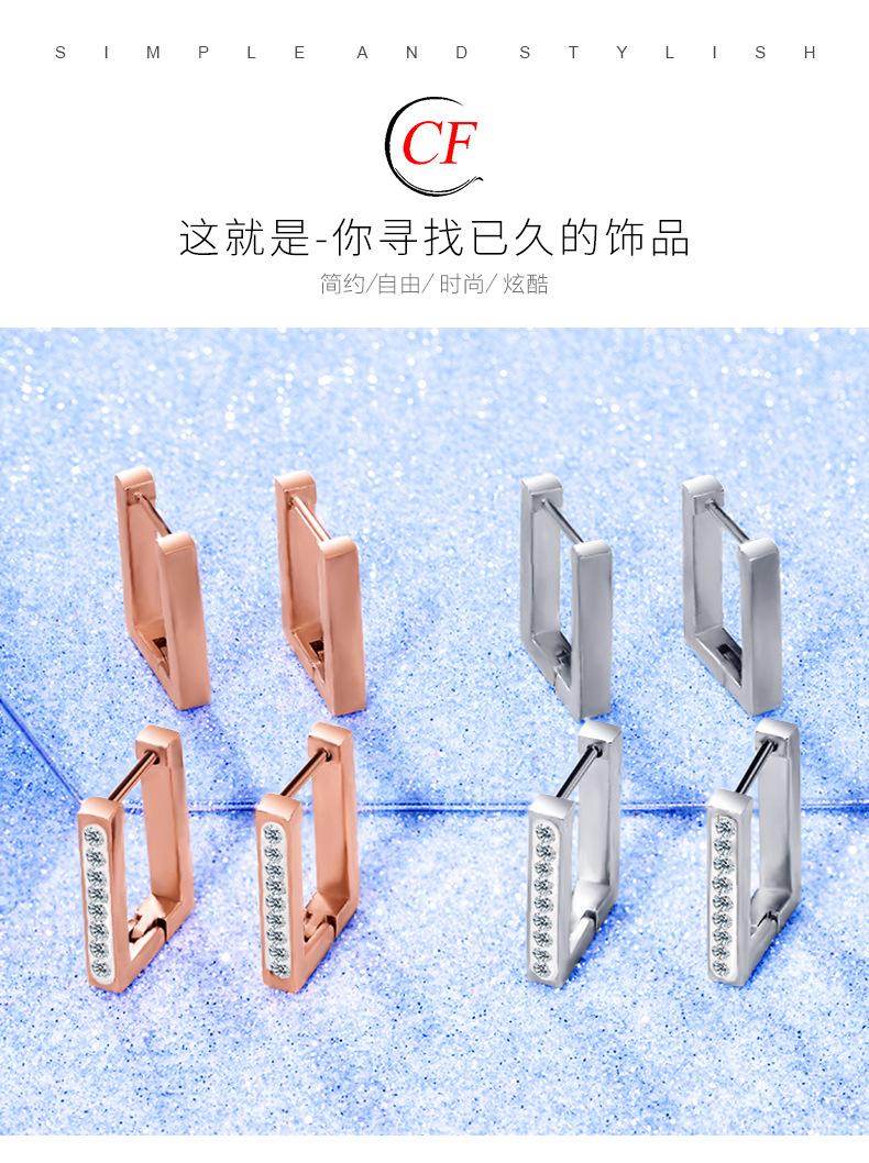 Moda simples Novos brincos quadrados geométricos de aço titânio oco OL vento fundo de lama branca Brincos de aço inoxidável com diamante
