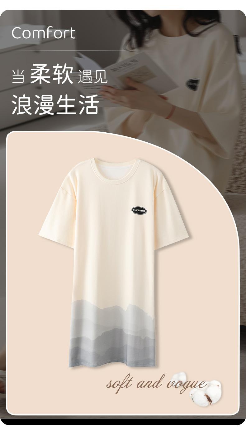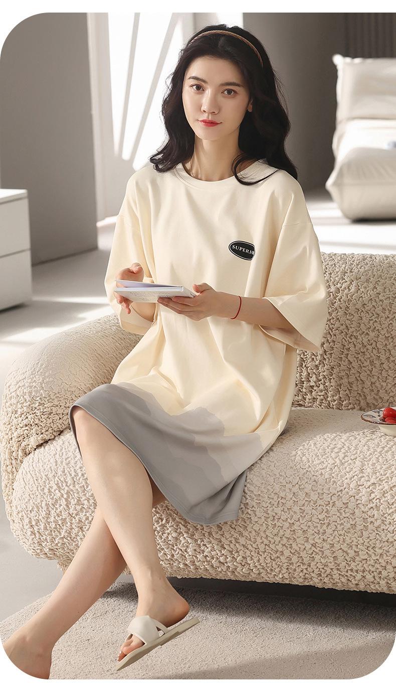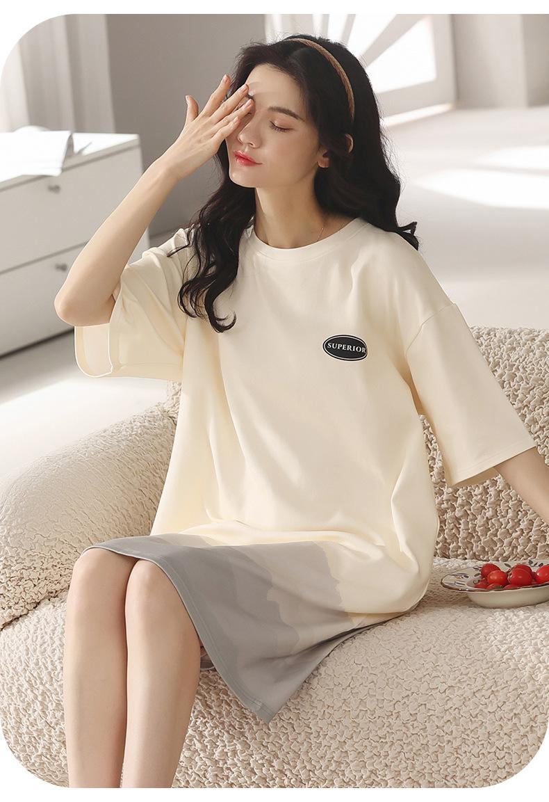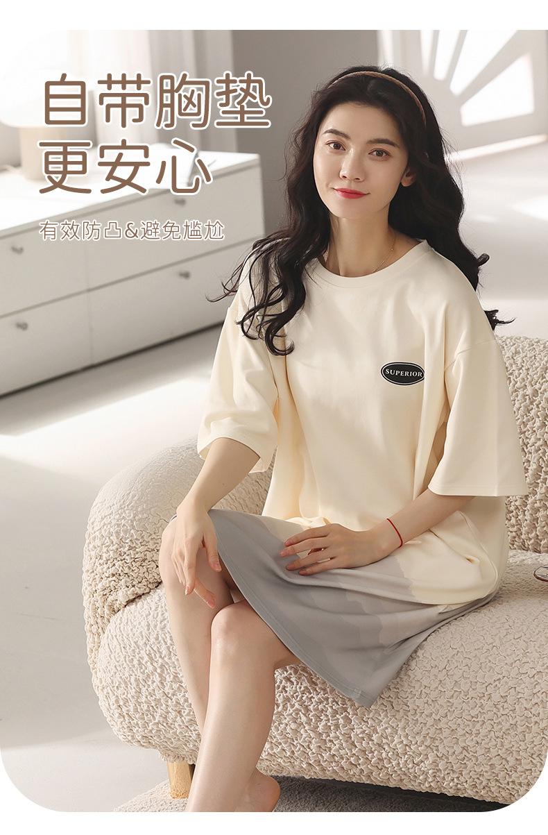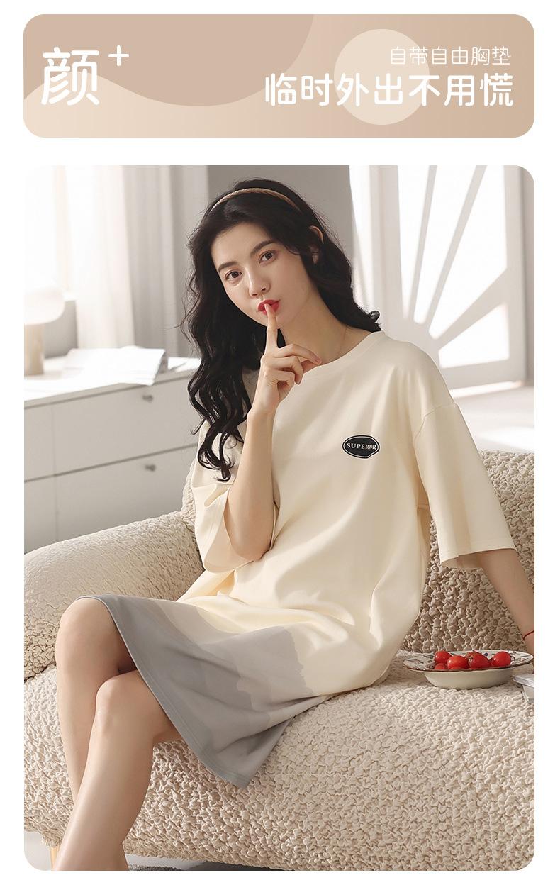 Compre [Com almofada no peito] Camisola de algodão puro feminina, camisola de verão de comprimento médio com almofada no peito, roupas fofas e fofas para casa no atacado no Joom.pro