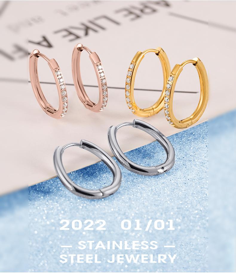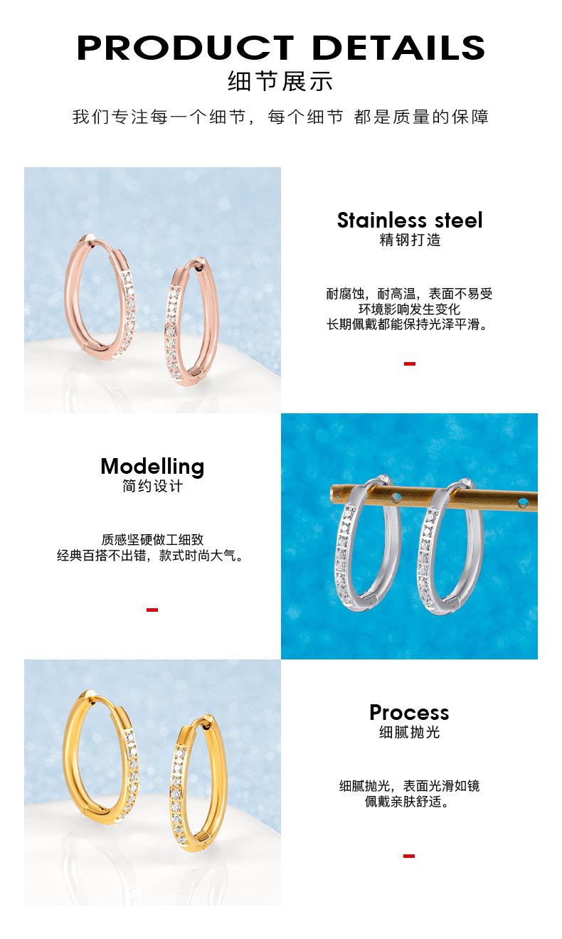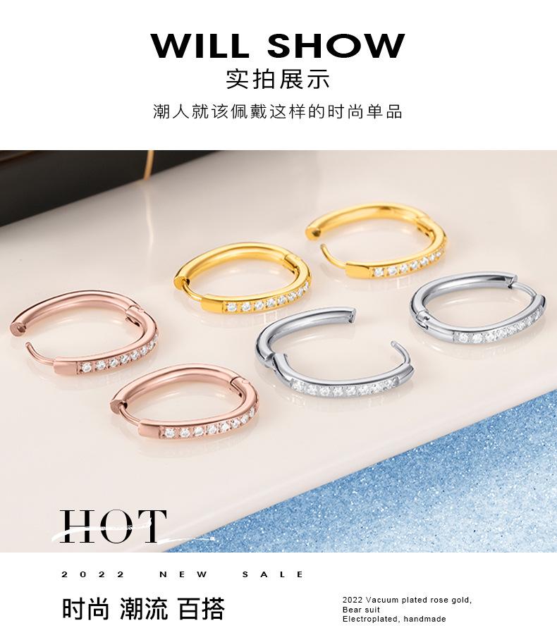 Brincos de diamante de aço titânio de alta qualidade e luxo leve, feminino, anel simples, todos os estilos de nicho, brincos de aço inoxidável em ouro rosa, atacado