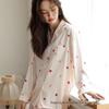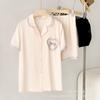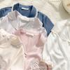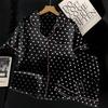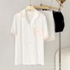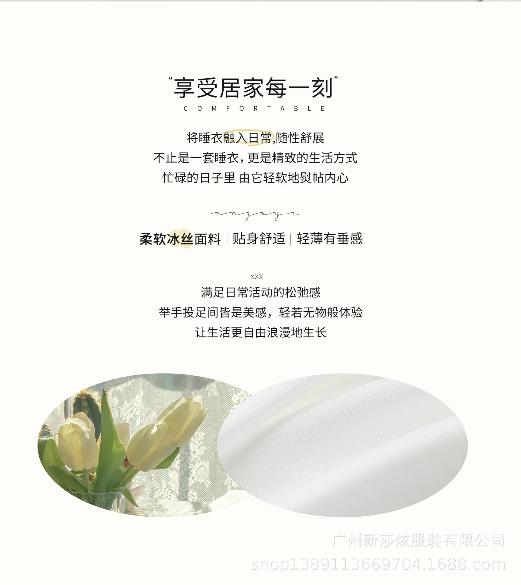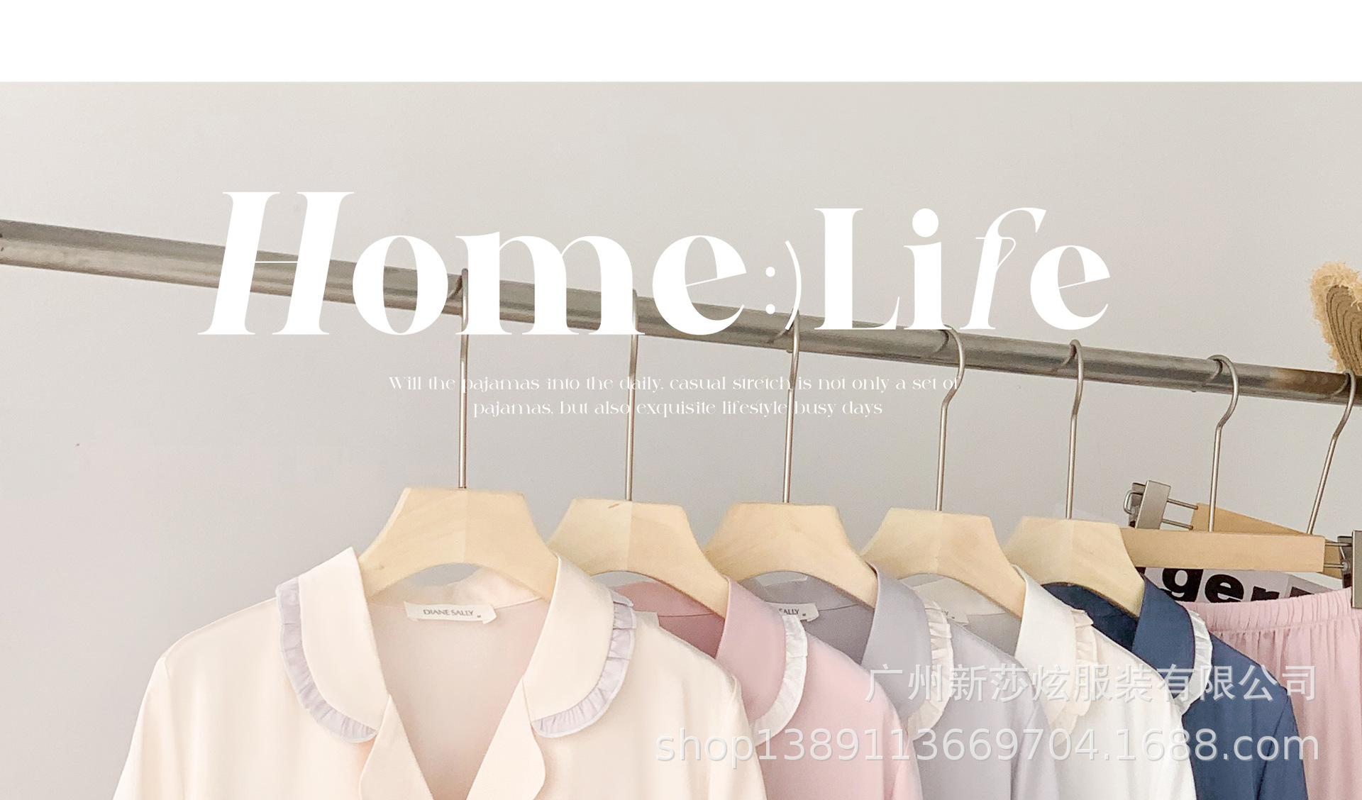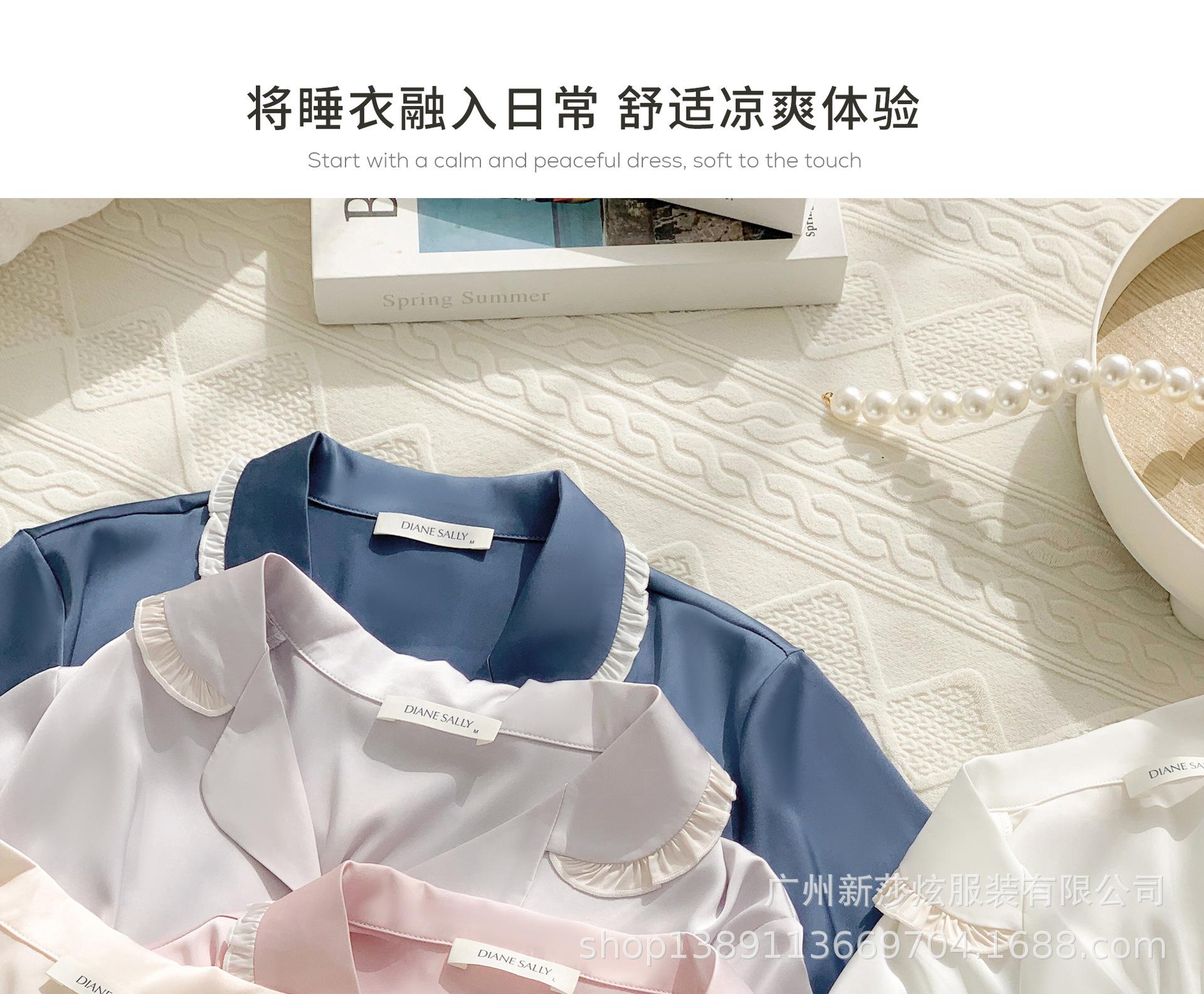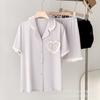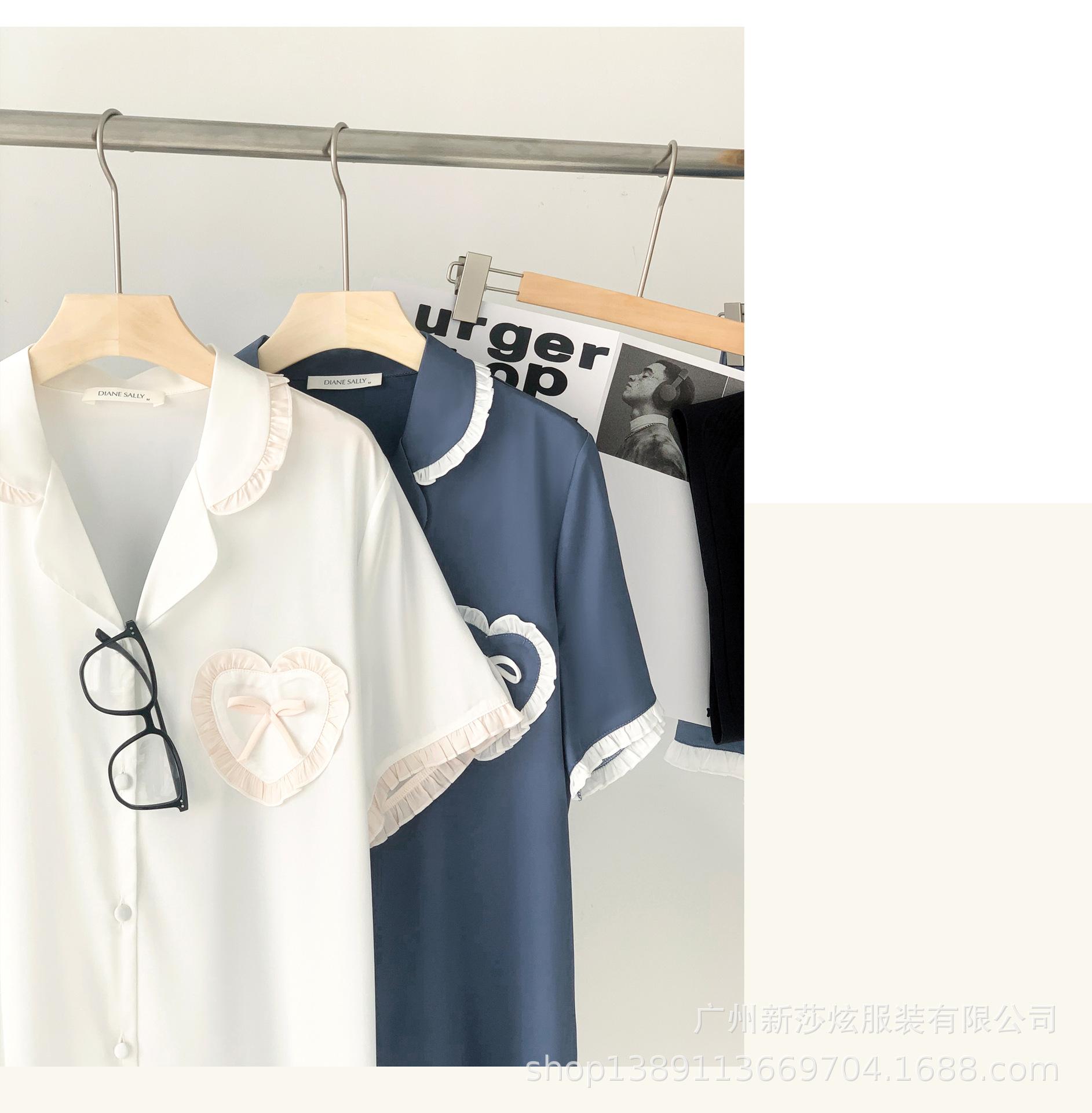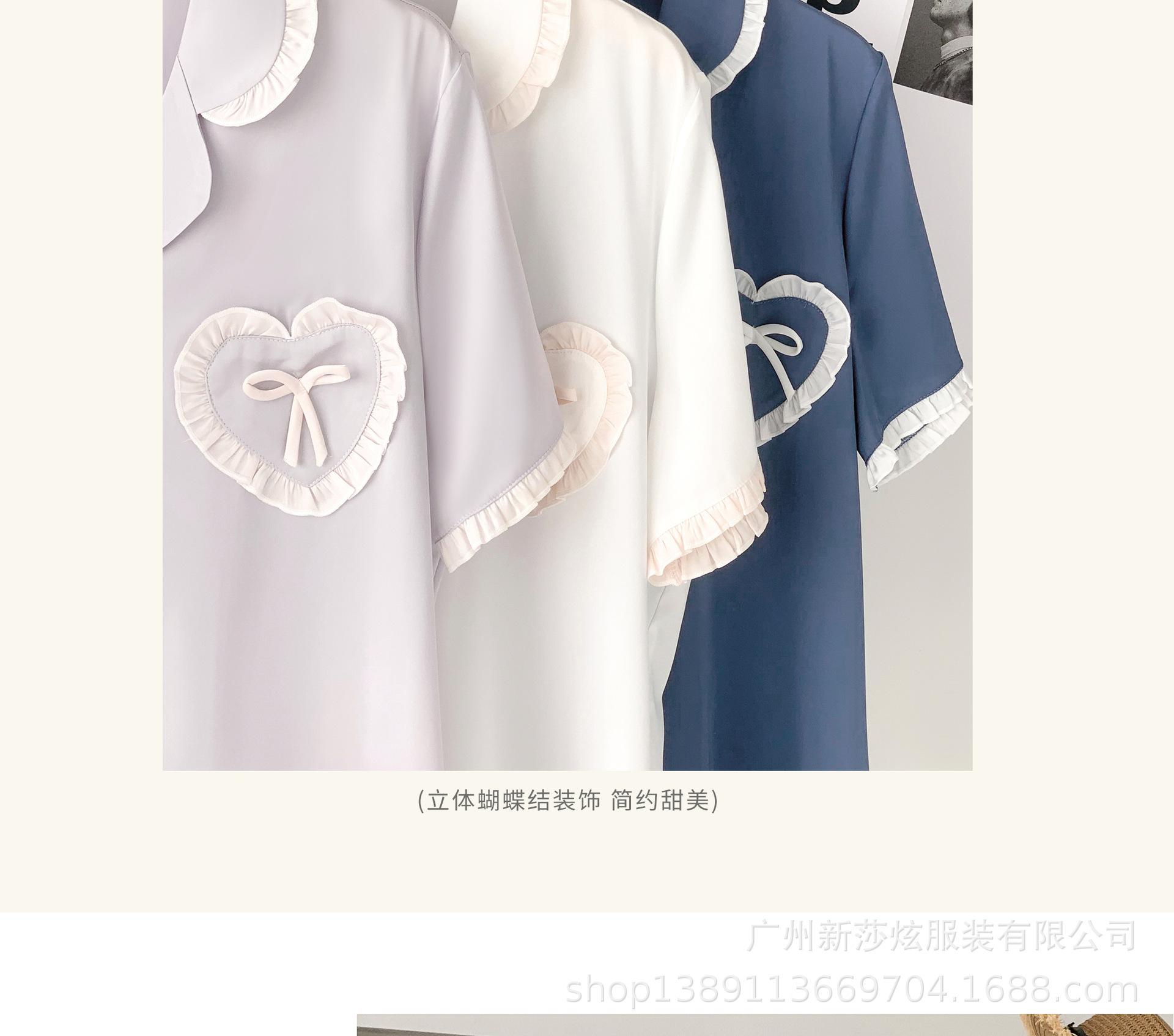 Pijama Feminino Primavera e Verão Fino Coração Roupa de Casa de Menina Conjunto de Duas Peças com Laço Estilo Doce Terno de Manga Curta em Seda Gelo