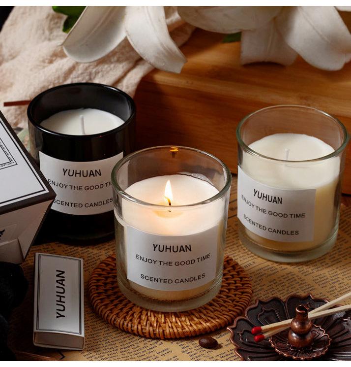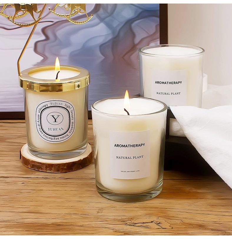 Vidro aromaterapia vela óleo essencial incenso cera de soja fragrância smoke-free vela aniversário presente mão presente atacado