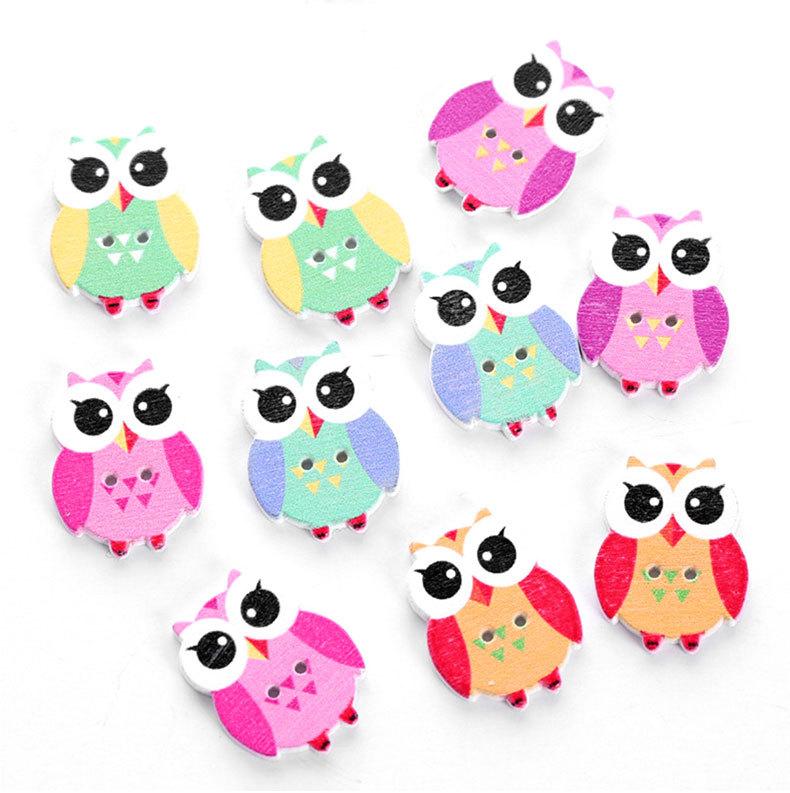 Coruja Flor Forma Madeira Botão Suéter Botão Dois Olhos Ameixa Botão Criança