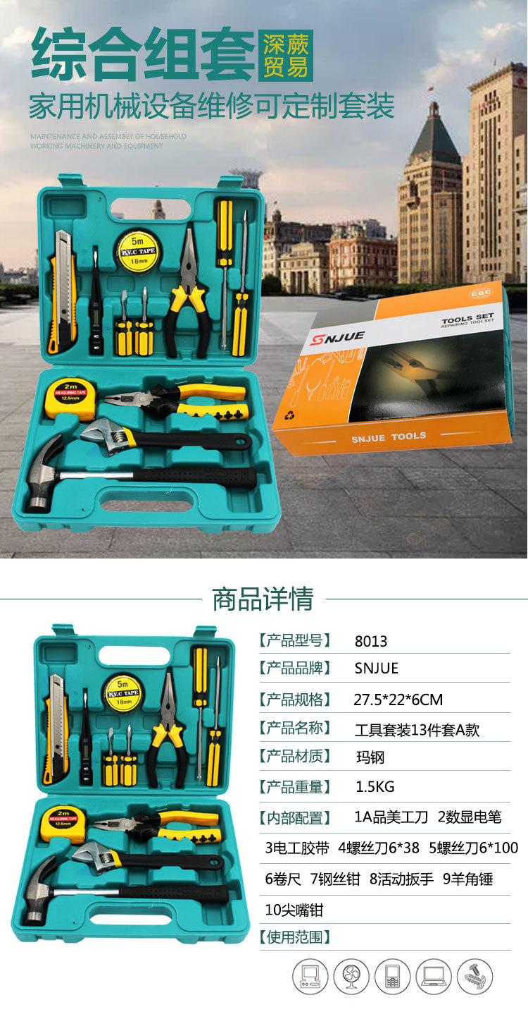 | Novo conjunto de ferramentas de hardware multifuncional de 13 peças, caixa de ferramentas de combinação de dupla finalidade para carro e casa com alicate de ponta fina 8013-1 |