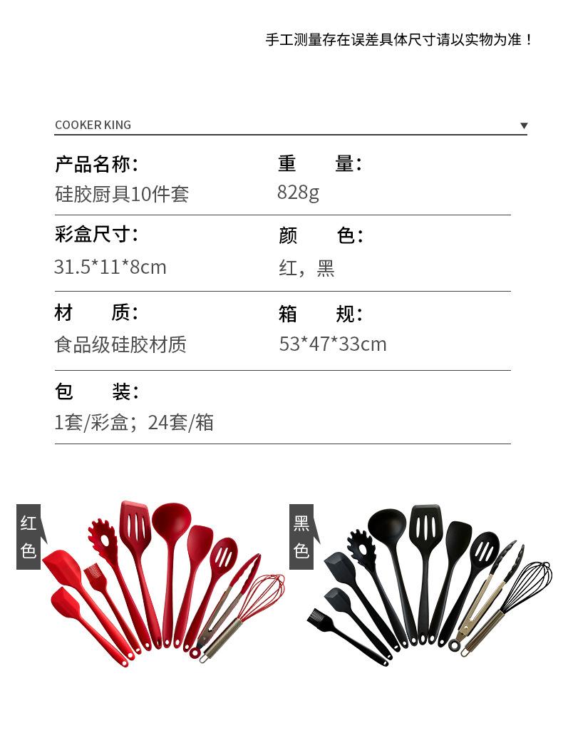 Espátula de silicone colher de sopa 10 peças conjunto antiaderente espátula de silicone grau alimentício Silicone Spatula Silicone conjunto de utensílios de cozinha personalizado