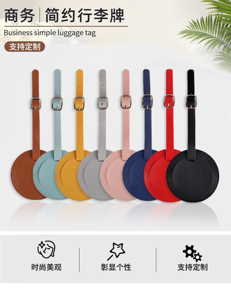 Etiqueta de bagagem de couro pu macio transfronteiriço costurada em couro redondo etiqueta de bagagem de cartão de embarque