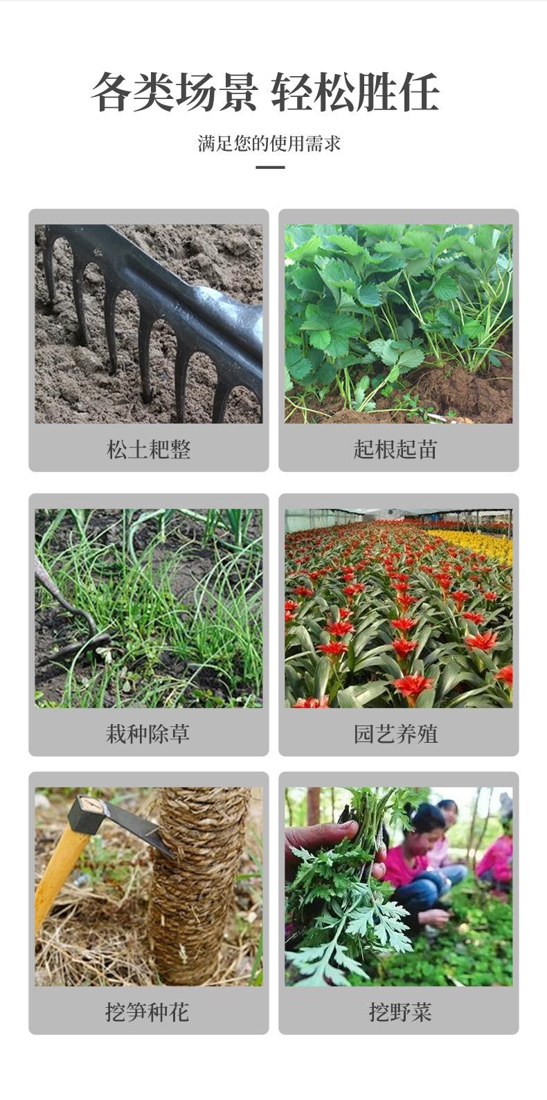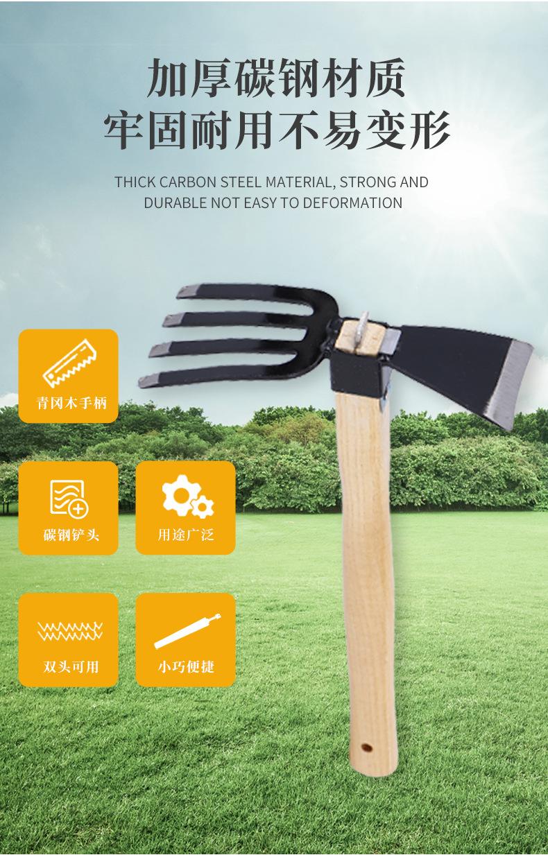 Fábrica de atacado feroz enxada de aço de quatro pés ancinho dupla finalidade capina e pá grama pinho solo artefato montanhismo ao ar livre picareta transfronteiriça