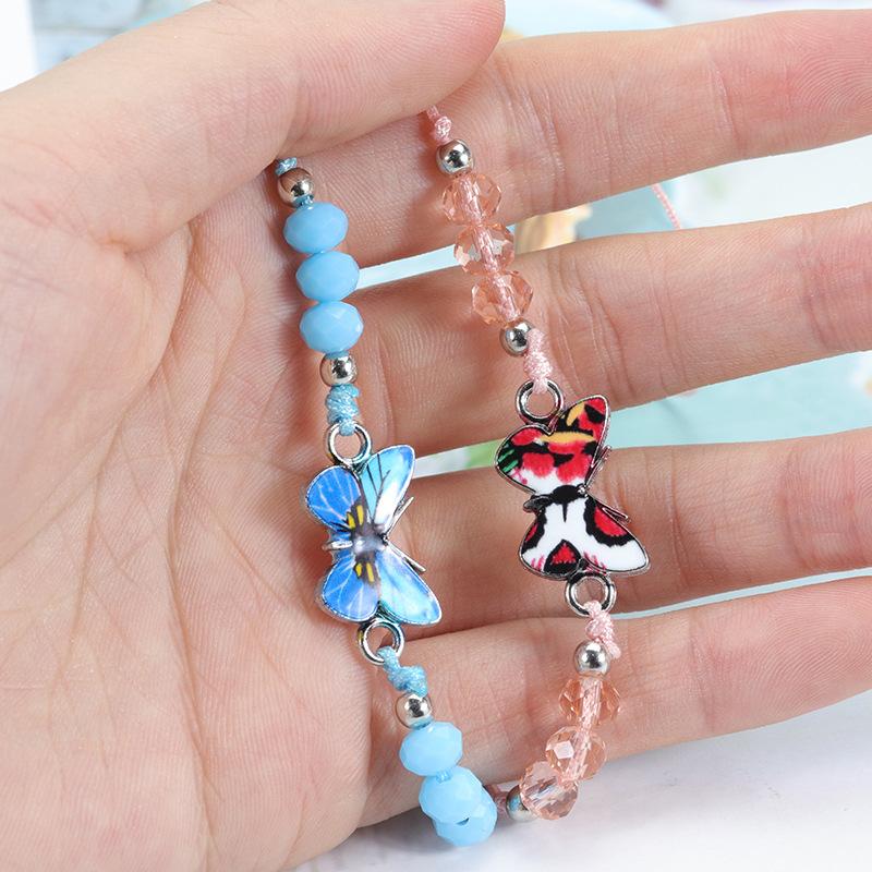 Cross-border novo cristal frisado pulseira borboleta colorida Summer Girl pulseira tecida vários fabricantes a longo prazo em estoque