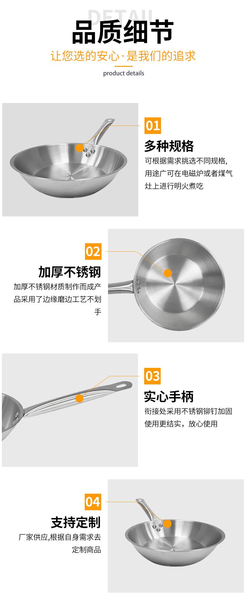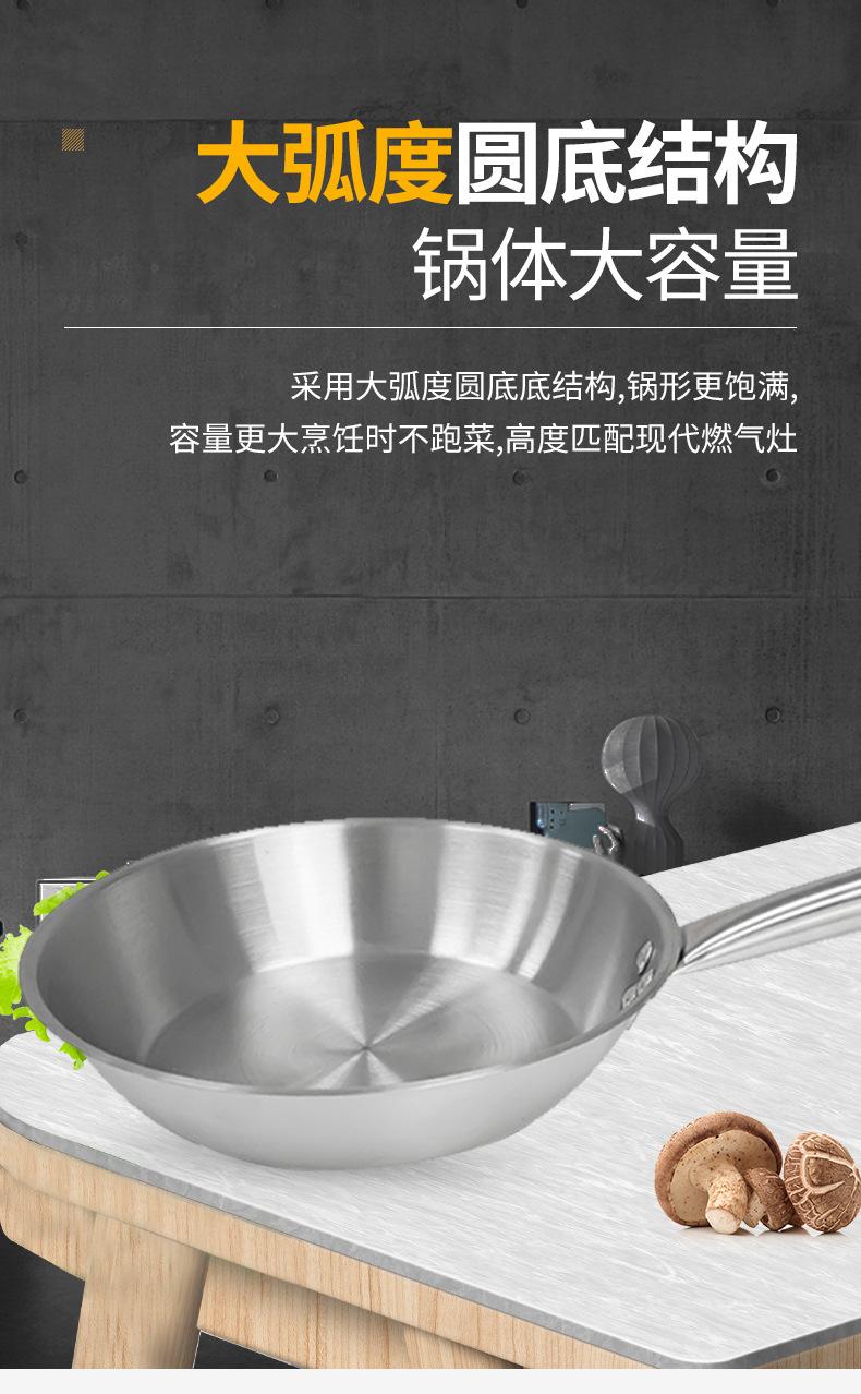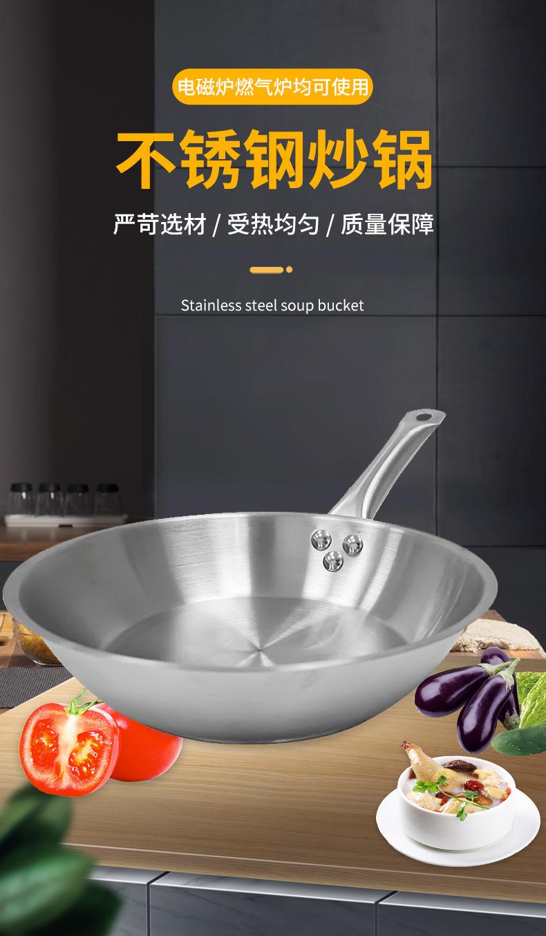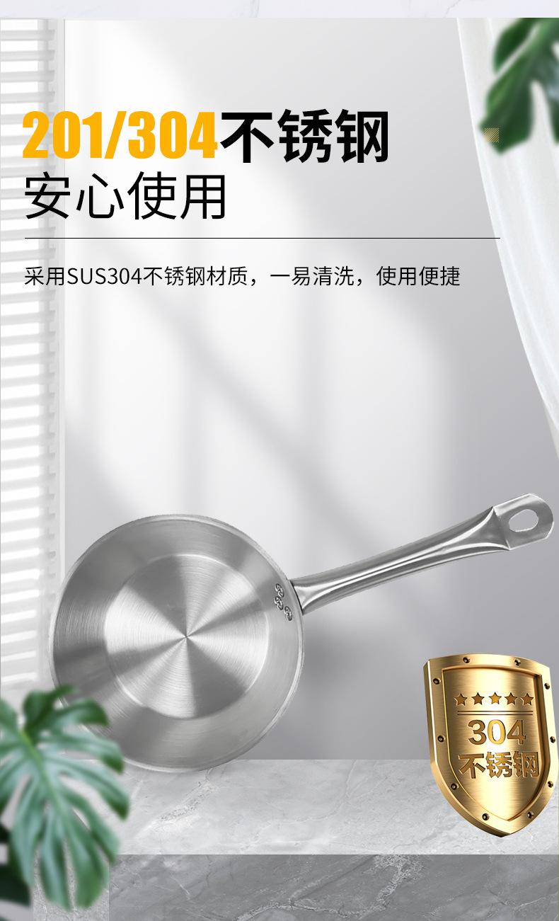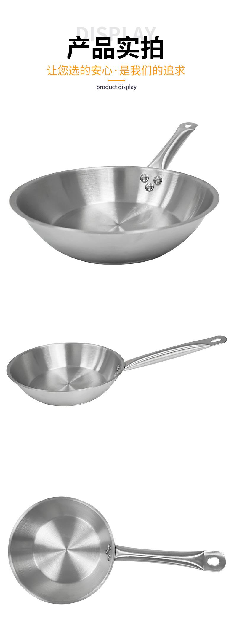 Fornecimento de fábrica para uso doméstico em aço inoxidável wok ovo frito panqueca bife frigideira frigideira antiaderente em estoque atacado