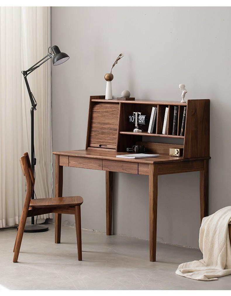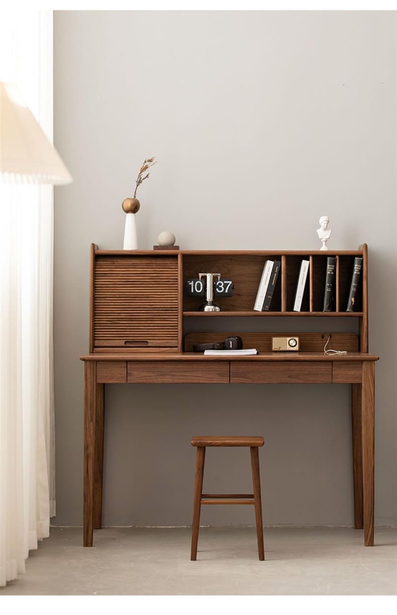 Nórdica Black Walnut mesa de madeira maciça estilo japonês estante de madeira combinação simples mesa de escritório leve mesa de maquiagem de luxo