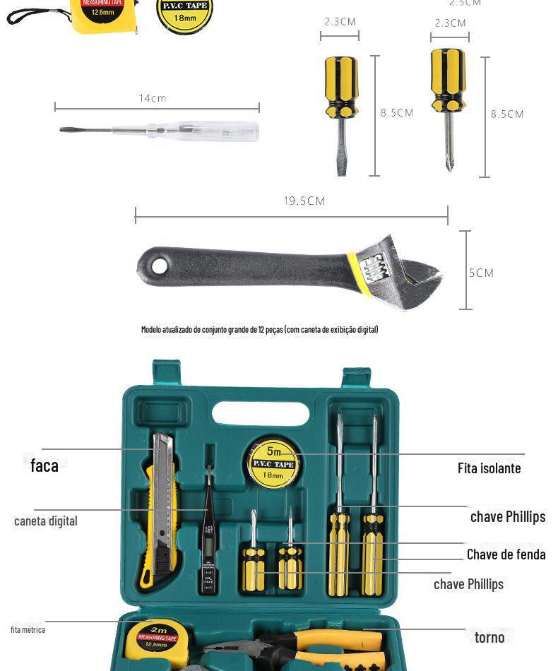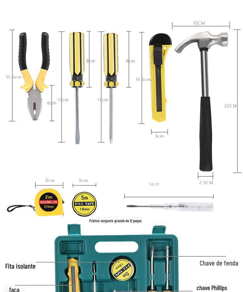 | Pequena caixa de ferramentas combinada de 12 peças, presente publicitário, conjunto de ferramentas portátil, ferramentas de hardware doméstico para carro 8012e |