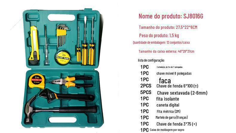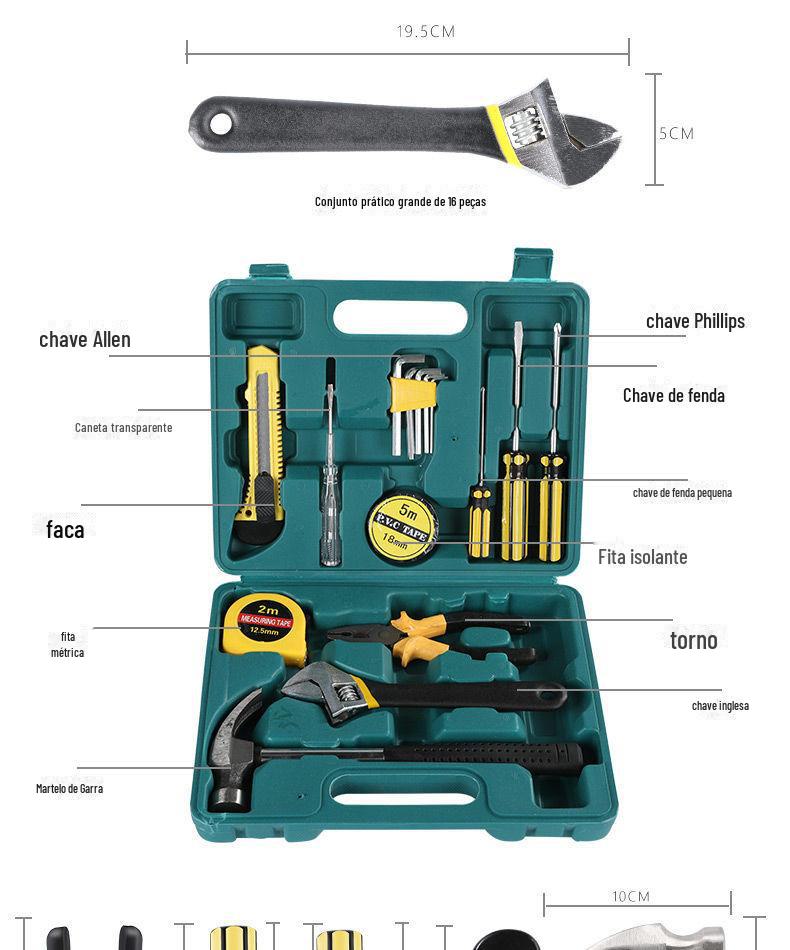 | Ferramentas de hardware, 16 peças, caixa de ferramentas de combinação de presente, ferramentas de reparo de carro, chave de martelo tipo b 8016g |