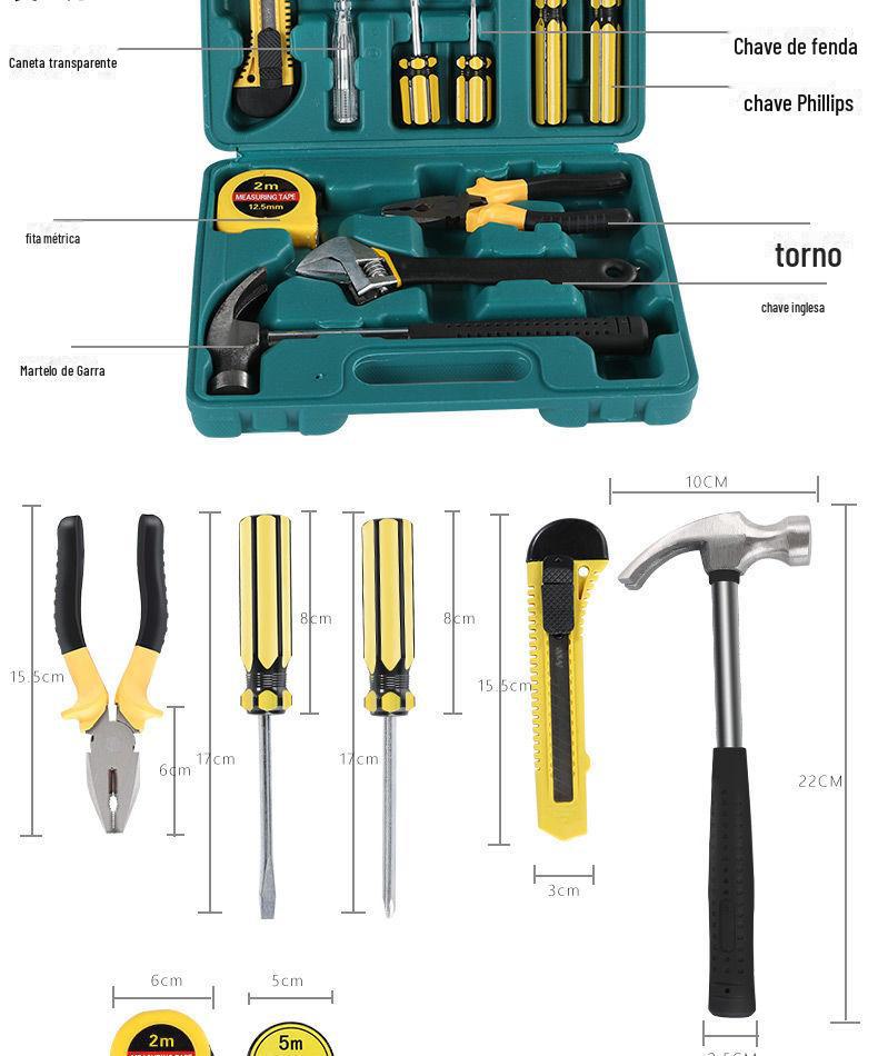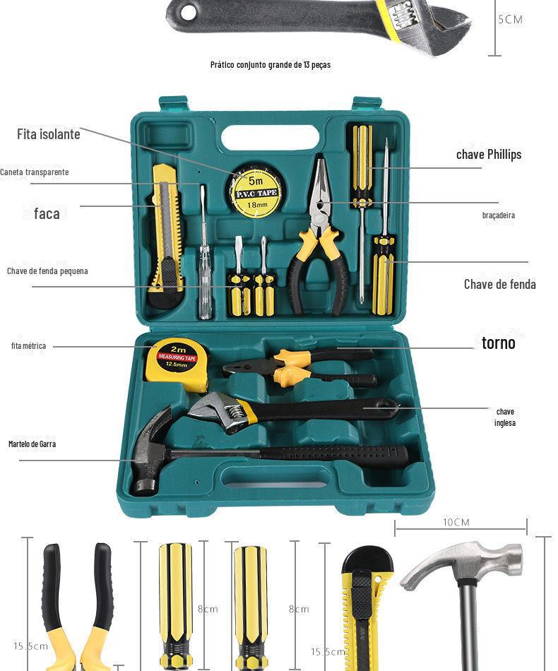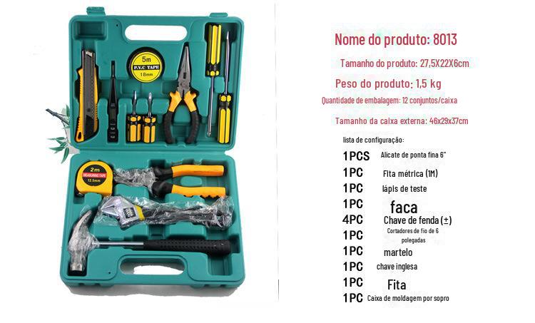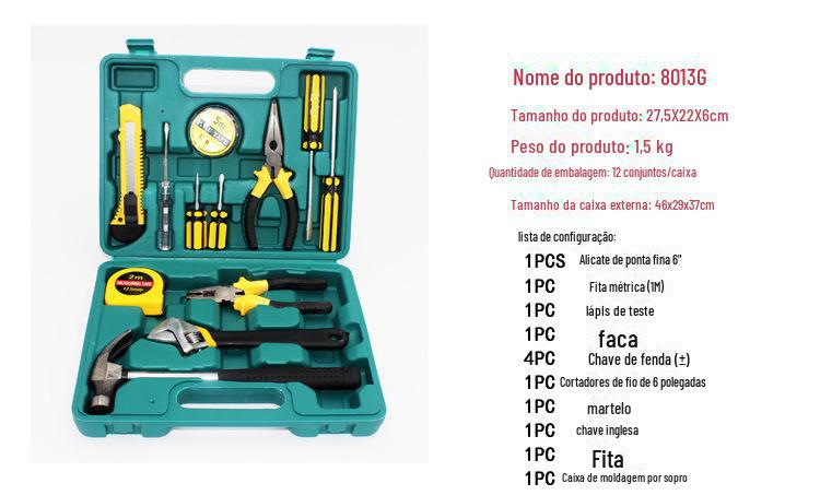 | Conjunto de ferramentas de hardware multifuncional, 13 peças, caixa de ferramentas de combinação de presente, carro, casa, dupla finalidade com alicate de ponta fina 8013 |