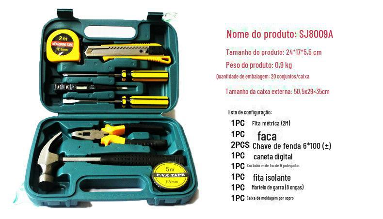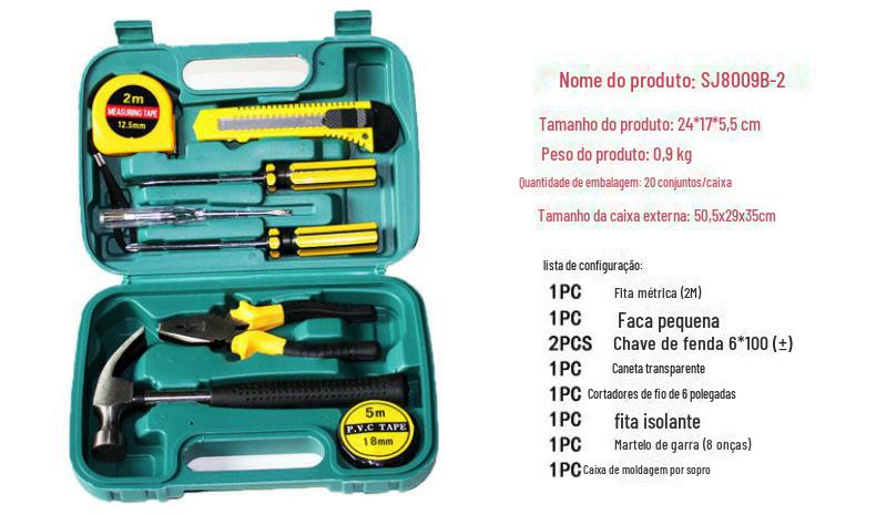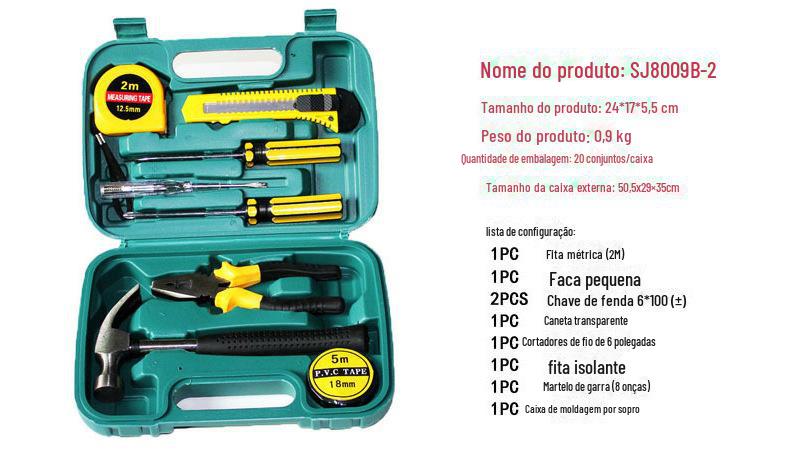 | SNJUE 9 peças caixa de ferramentas de hardware doméstico martelo prático conjunto de ferramentas de presente ferramenta de combinação 8009B-2 |