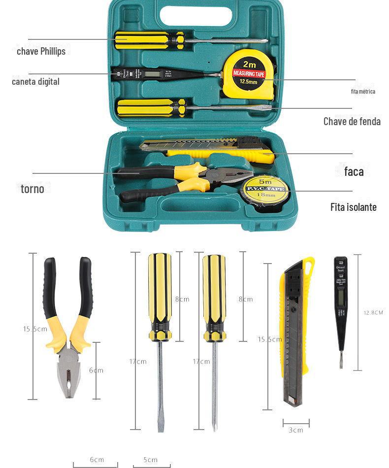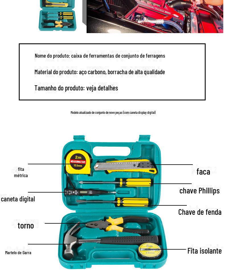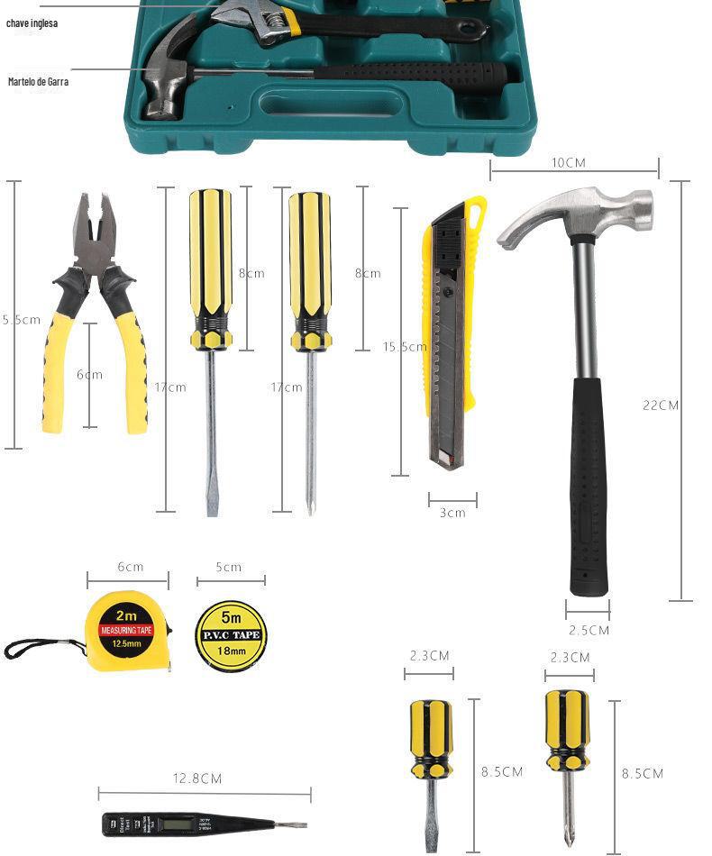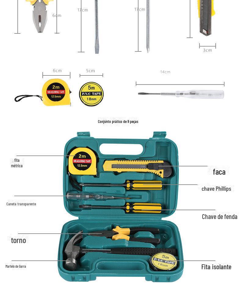 | Conjunto de ferramentas de hardware doméstico atualizado, 9 peças, caixa de ferramentas de presente com ferramenta manual de martelo 8009A-1 |