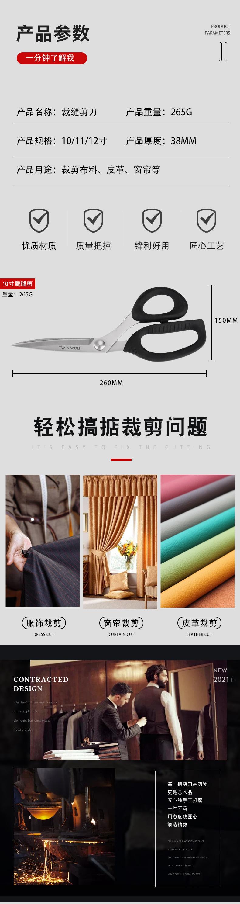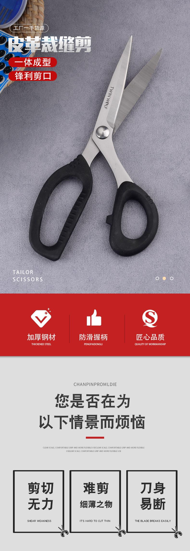 Nova tesoura de couro Full Handle Couro Sharp Cloth Shears Handmade Household Clothes Roupas de aço inoxidável tesoura alfaiate