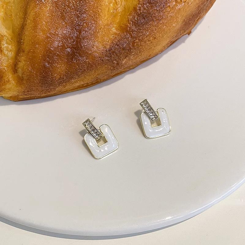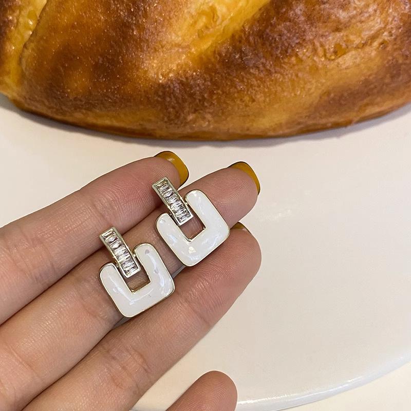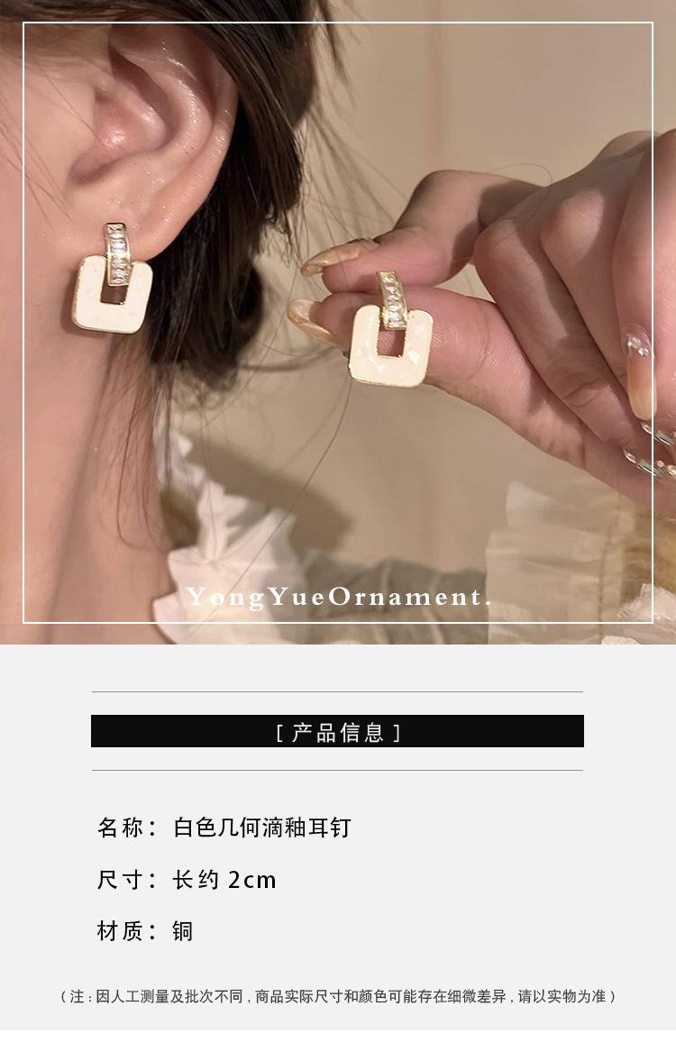 White Geometric Drop Glaze Stud Earrings