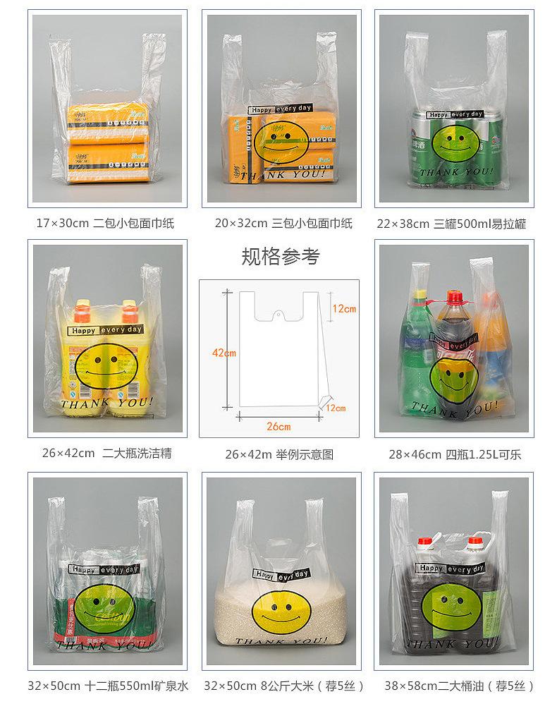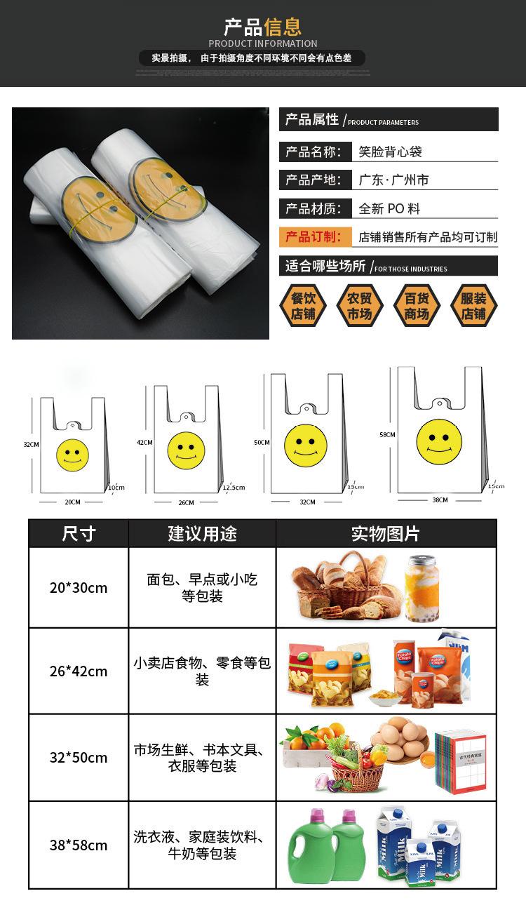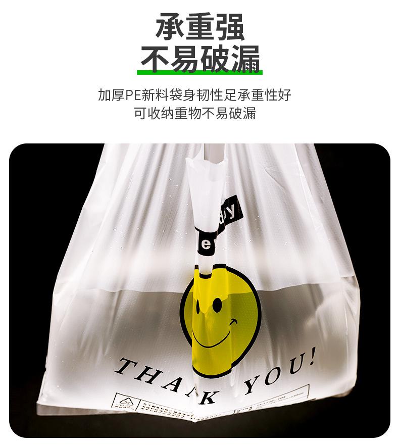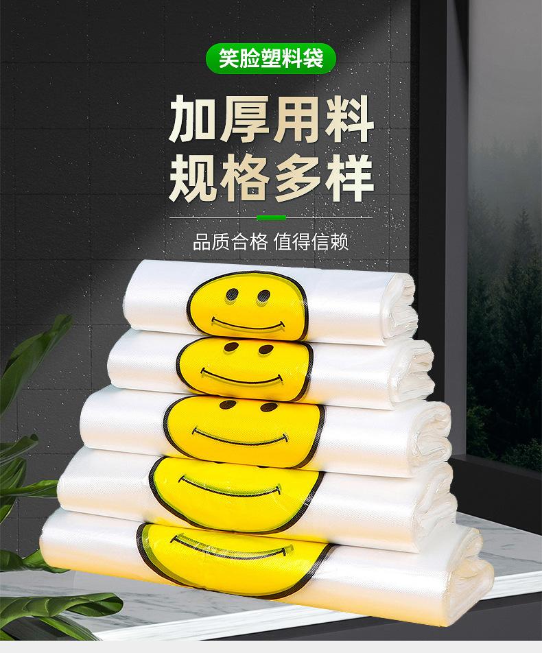 Smiley face saco de colete plástico em estoque atacado supermercado saco de compras frutas takeaway saco de embalagem de material novo saco de compras