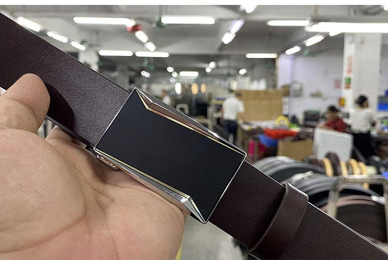 Cinto Formal de Negócios com Logotipo Gravável Fivela Automática Masculina Couro de Vaca de Primeira Camada Camada Única de Alta Qualidade Pronto para Venda