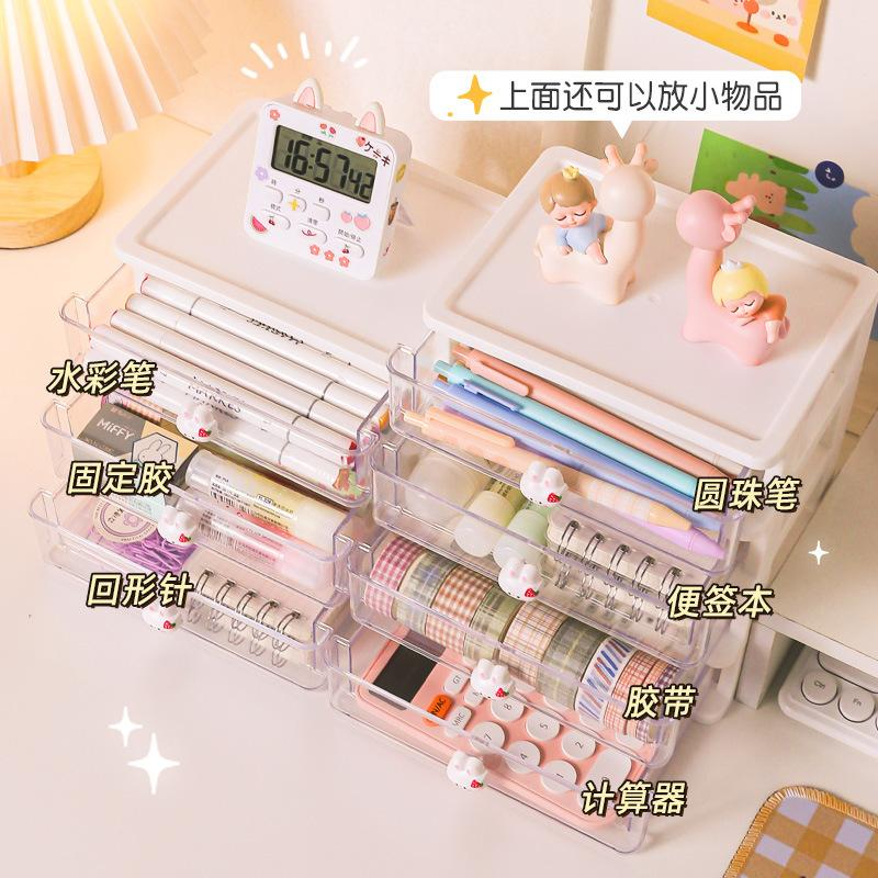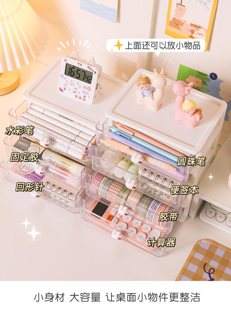 Caixa de Armazenamento na Mesa, Caixa de Gaveta de Mesa de Estudante, Porta-Canetas, Suporte Fofo para Acessórios de Cabelo de Escritório/Infantil, Caixa Organizadora