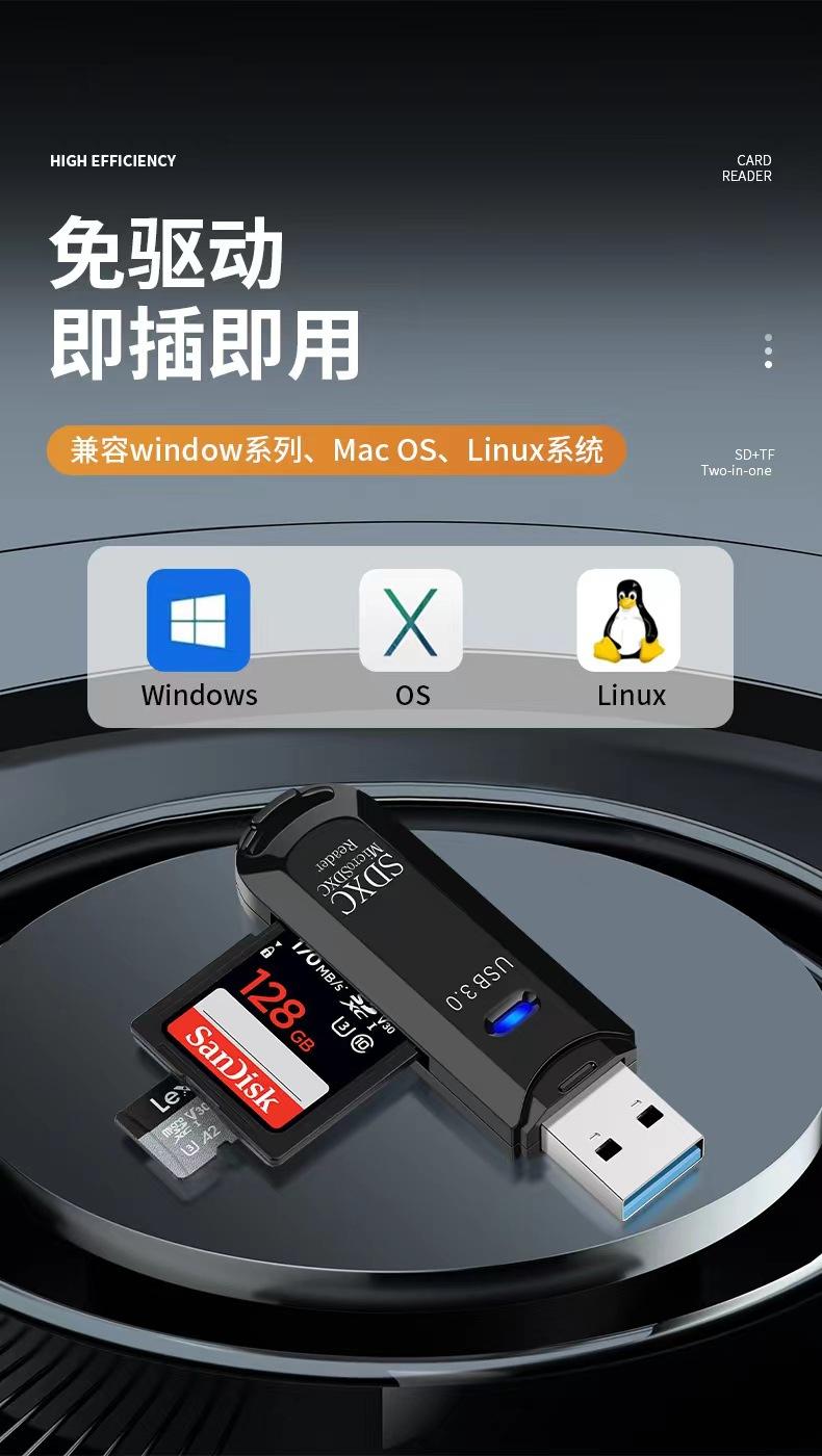 Venda por atacado leitor de cartão USB3.0 all-in-one Multi-função cartão SD TF cartão de telefone móvel leitor de cartão de memória conversor de cartão