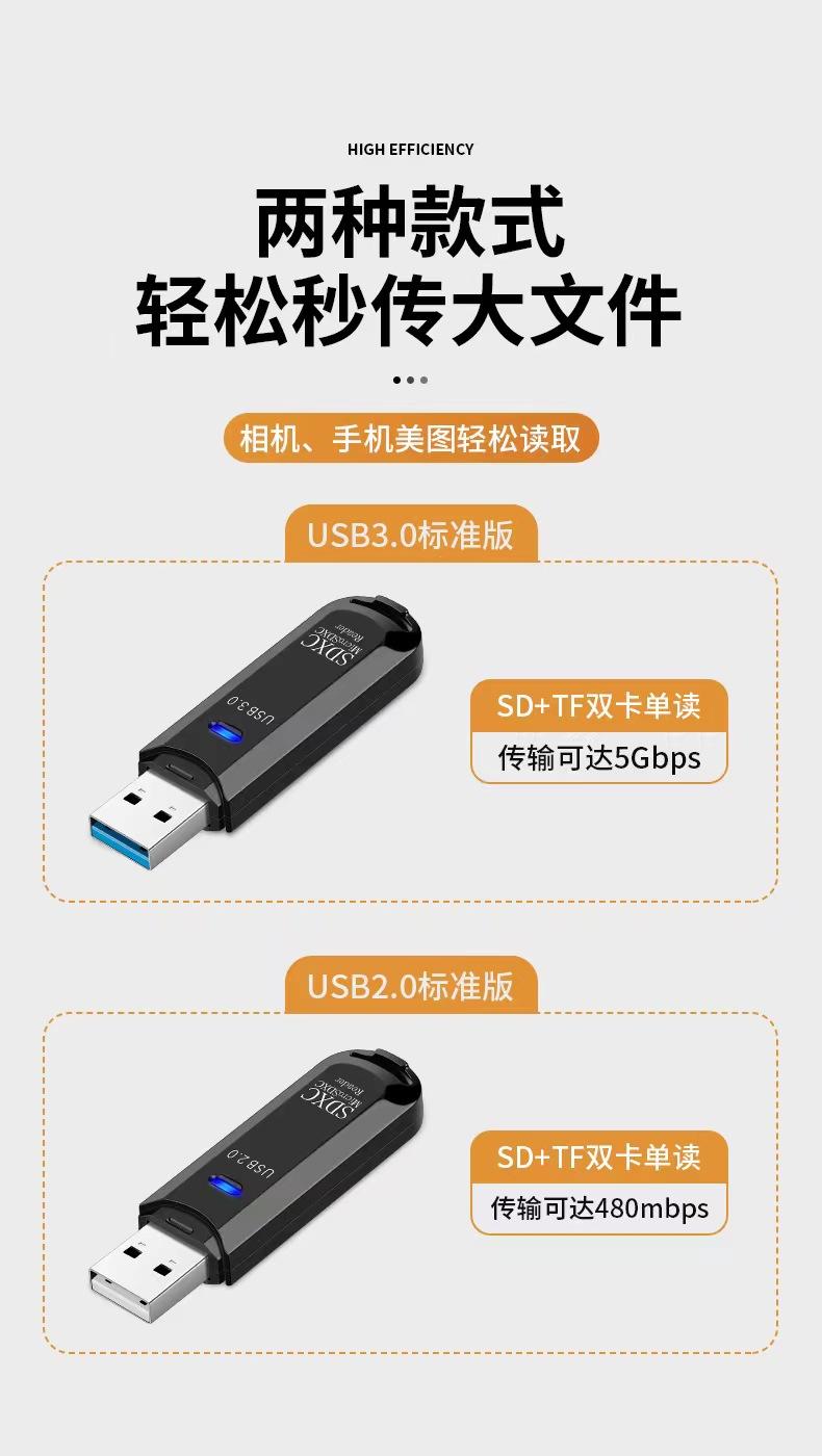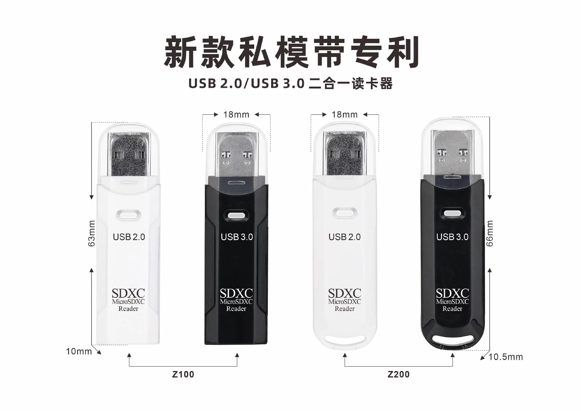 2-in -1 card reader black USB2.0, Two-in-one card reader White USB2.0, 2-in -1 card reader black USB3.0, Two-i...