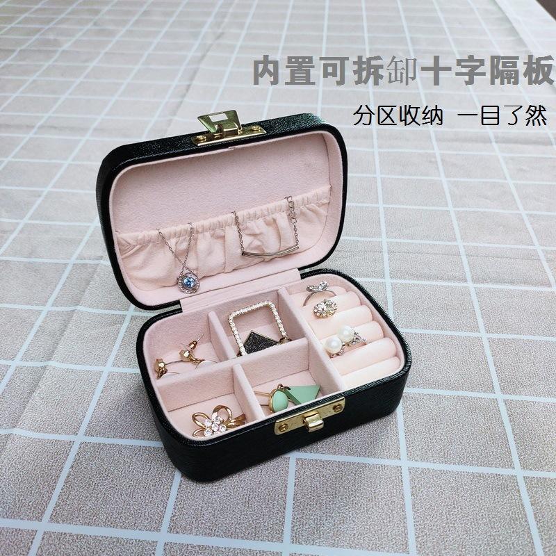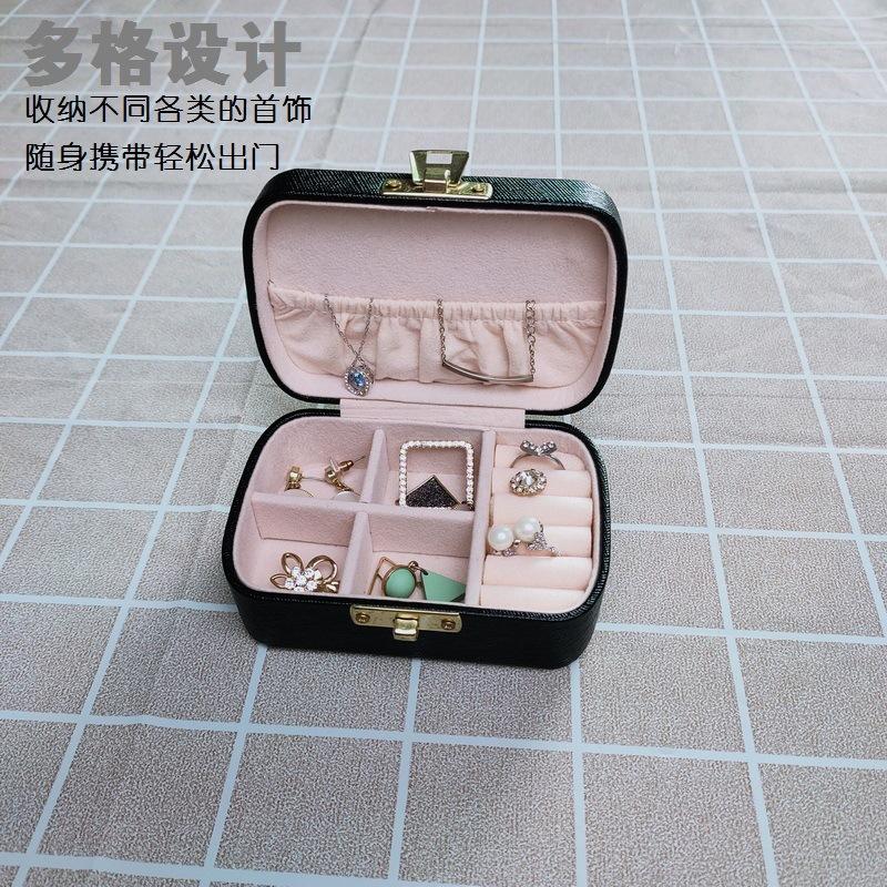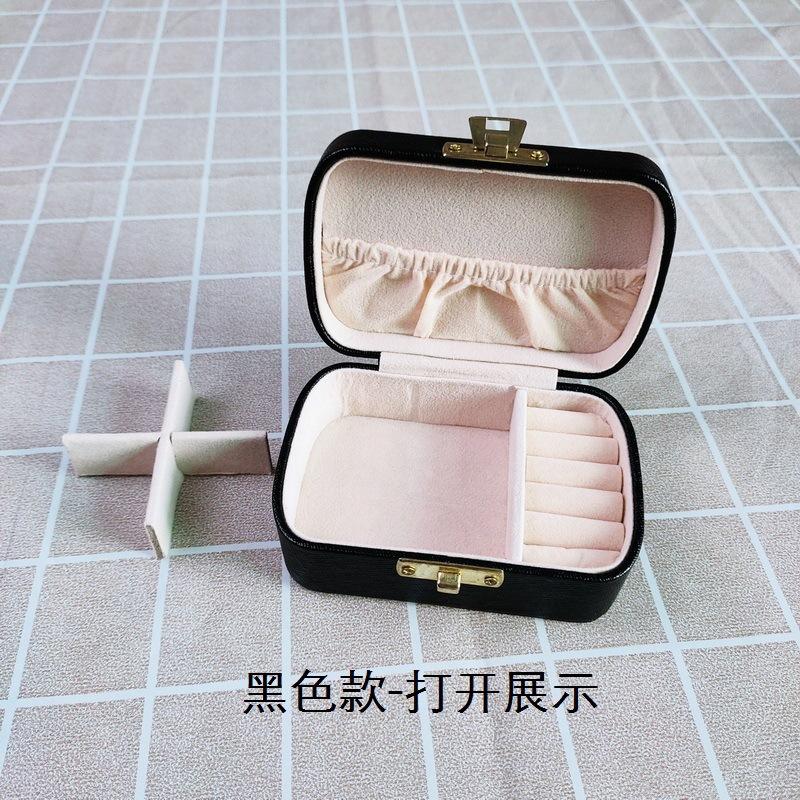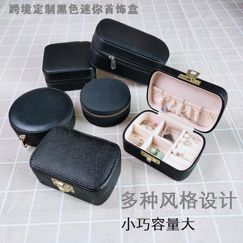 Cross-border Mini Jewelry Box Travel Brincos Anel Portátil Joias de Mão com Fechadura Caixa de Armazenamento de Joias Pretas Pequeno