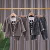 Fábrica transfronteiriça menino cavalheiro vestido terno 2021 primavera nova camisa xadrez das crianças calças finas terno de três peças