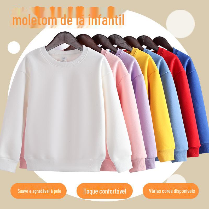 | 2023 novo outono e inverno moletom de veludo infantil engrossado meninos e meninas quente cor sólida em torno do pescoço de manga comprida camisa de fundo atacado | |