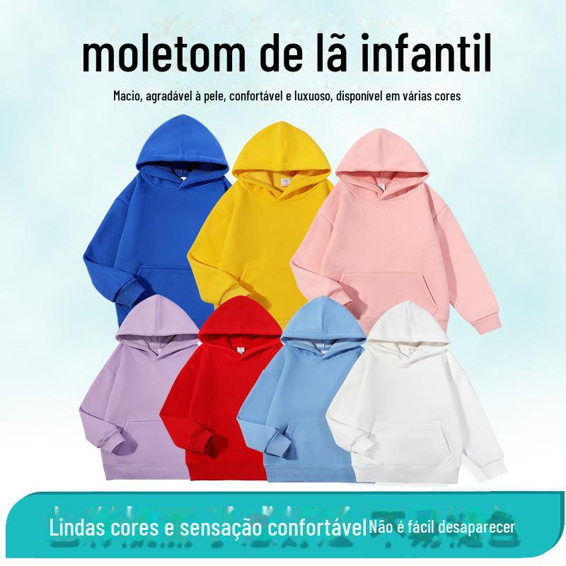 | Atacado outono e inverno cor sólida infantil mais veludo engrossado moletom com capuz tendência novos homens e mulheres crianças tops de mangas compridas | |