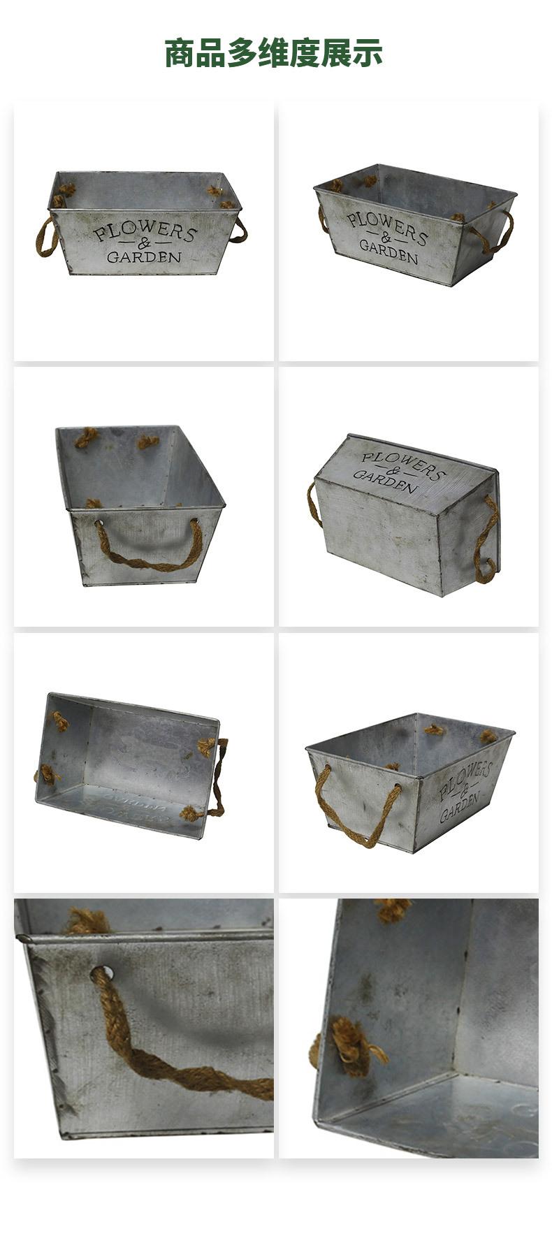 Nome do produto: vaso de flores de ferro galvanizado para jardim, corda de cânhamo doméstica, alça dupla, vaso de flores decorativo de jardinagem, vaso de flores de ferro quadrado