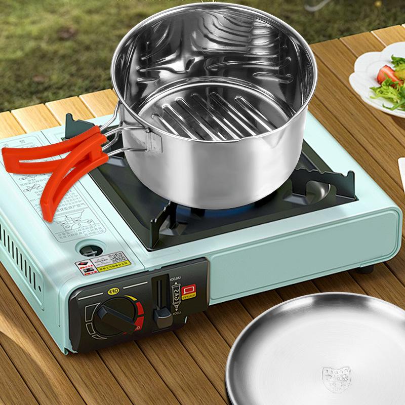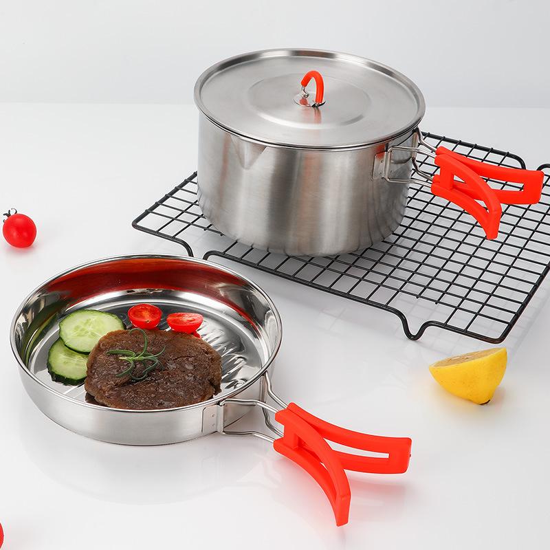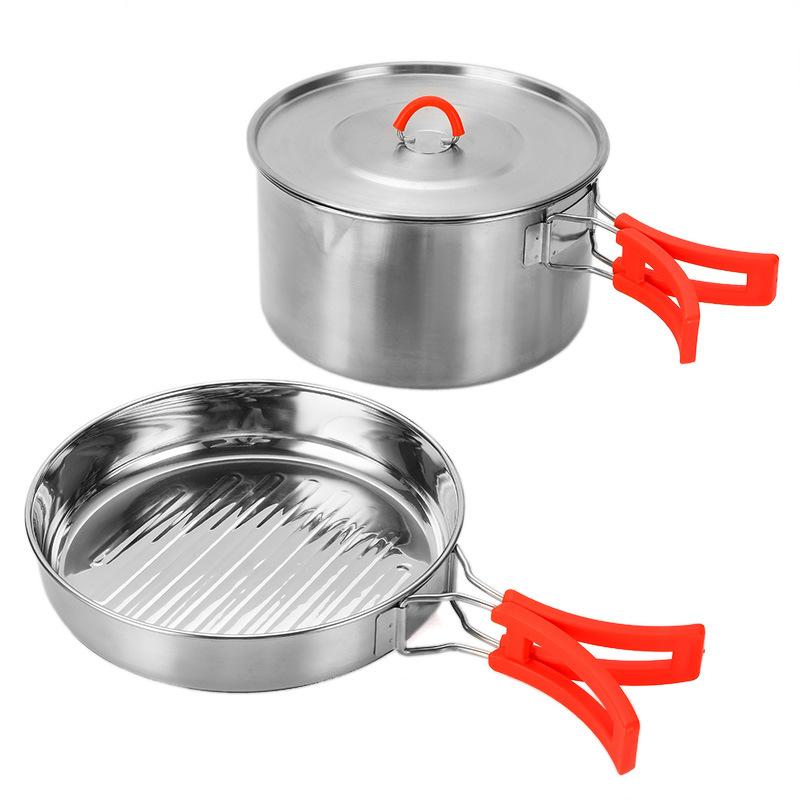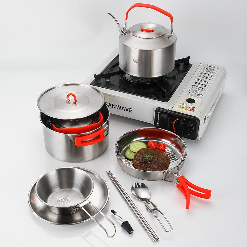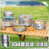 304 aço inoxidável camping panelas set ao ar livre portátil chaleira armazenamento combinação conjunto panelas camping suprimentos panelas