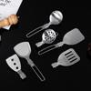 Pot. A bowl. Disc. Cup. Spoon. Soup leaks. A spatula. A frying shovel. Knife. Fork. Spoon