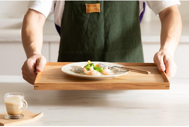 Bandeja de carvalho estilo japonês mortise retangular e tenon bandeja de madeira maciça prato de prato de frutas domésticas Chá de madeira Conjunto Bandeja de louça