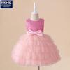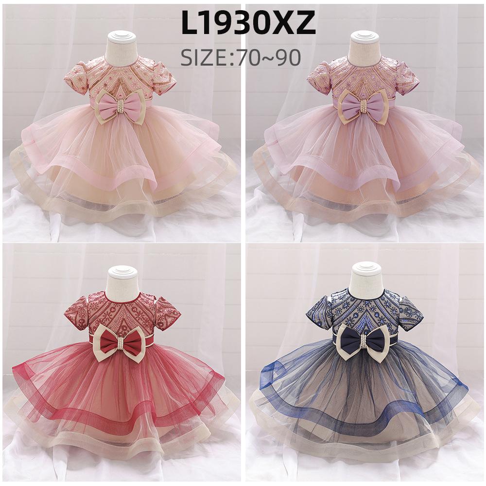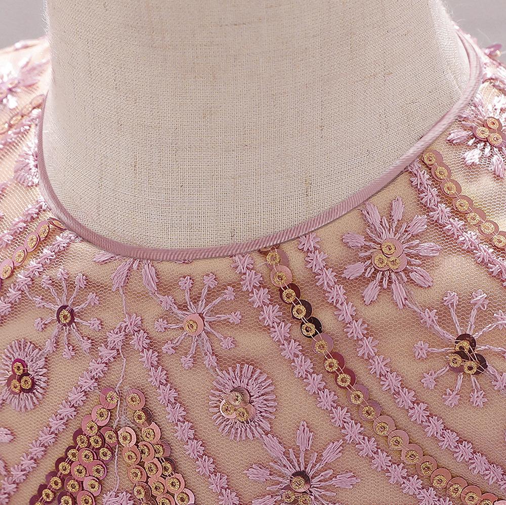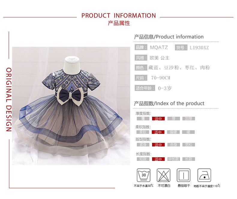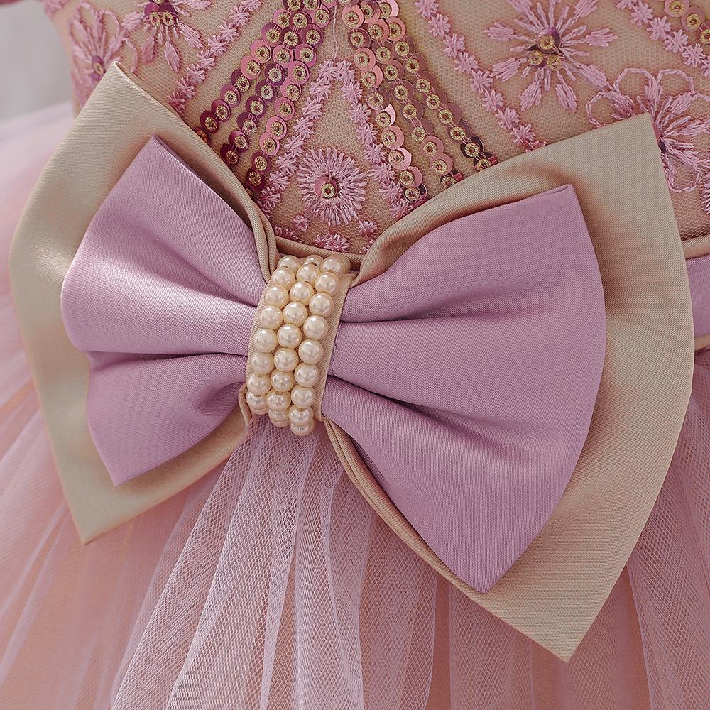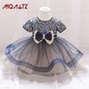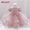 Meninas de um ano de idade vestido Renda Bordado princesa vestido lantejoulas de manga curta Bow Tutu vestido de bebê