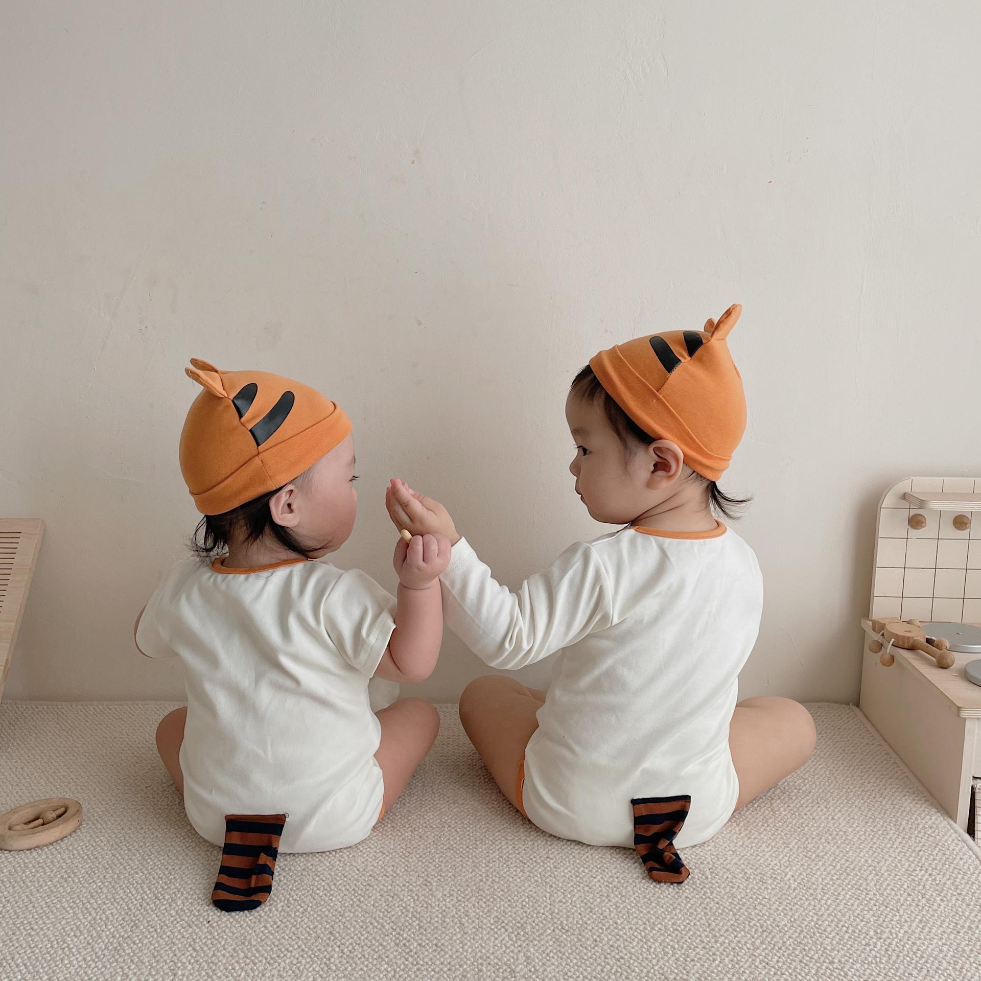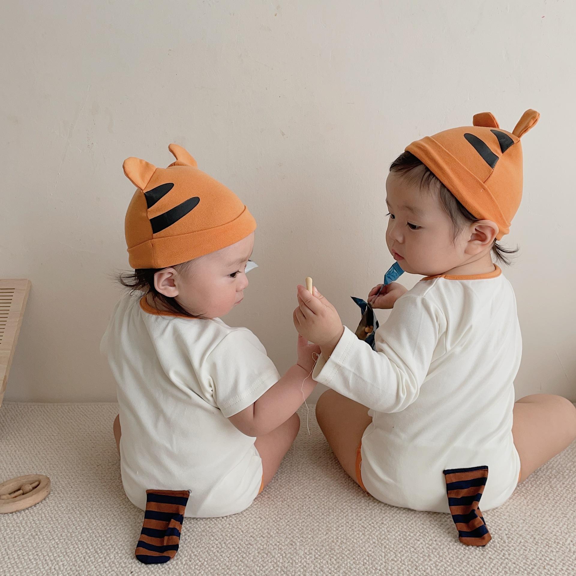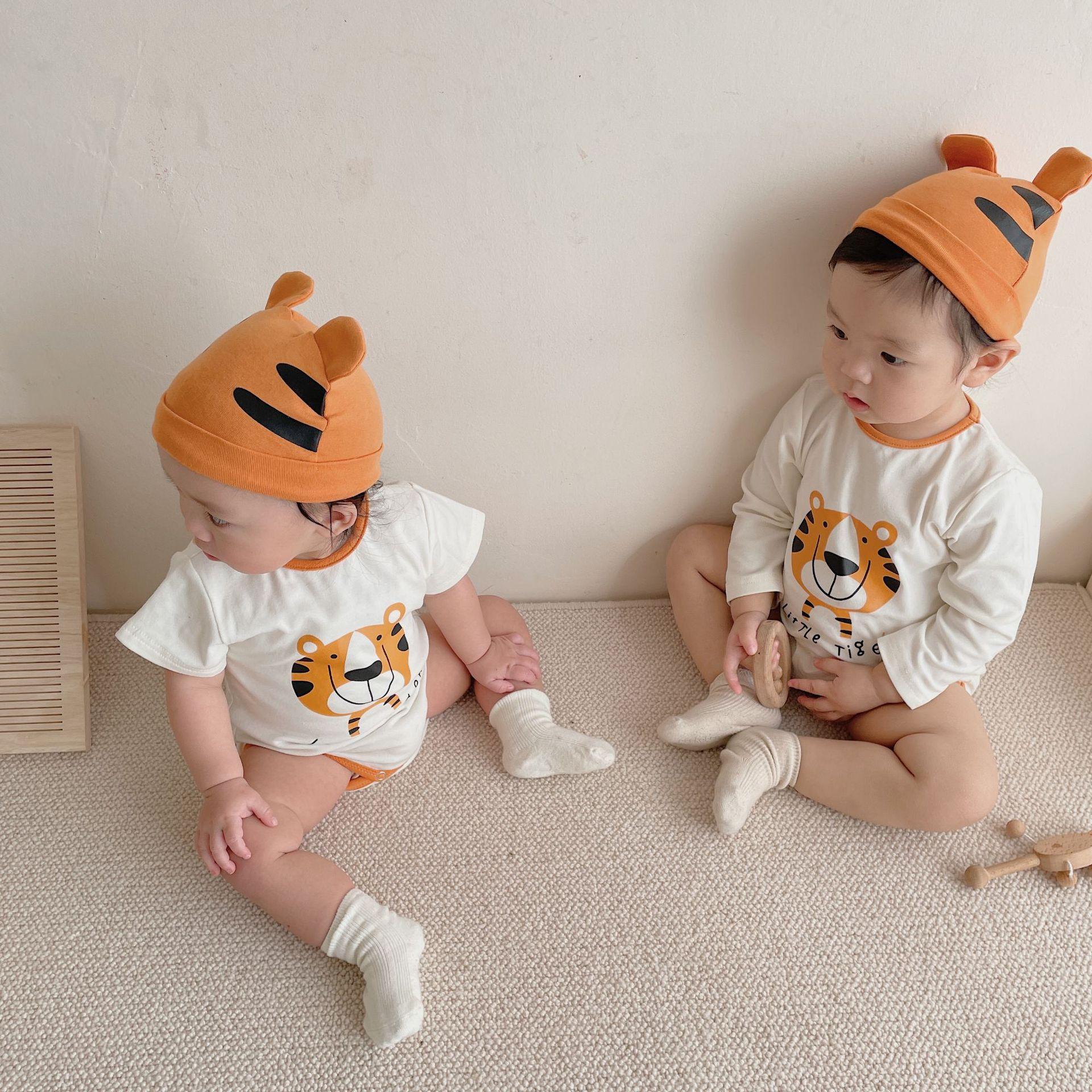 Conjunto Macacão Novo Bebê Primavera e Verão Estilo Ins Macacão Infantil e para Criança Estampa Tigre Bolsa Roupa de Pum