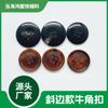 Botão redondo de quatro furos para roupas pretas, casaco de lã, corta-vento, fivela chanfrada, botão de chifre cor Curry