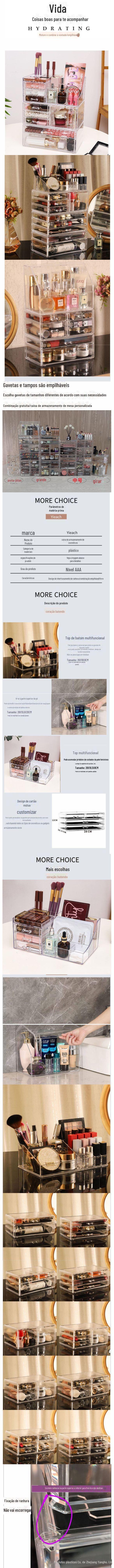 Caixa de armazenamento cosmético mesa de vestir mesa transparente luz luxo grande capacidade cuidados da pele produtos empilhável rack de armazenamento