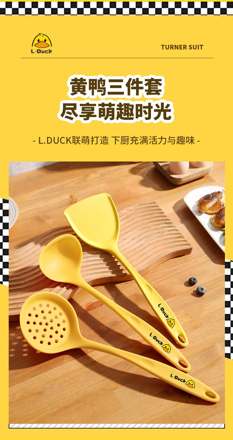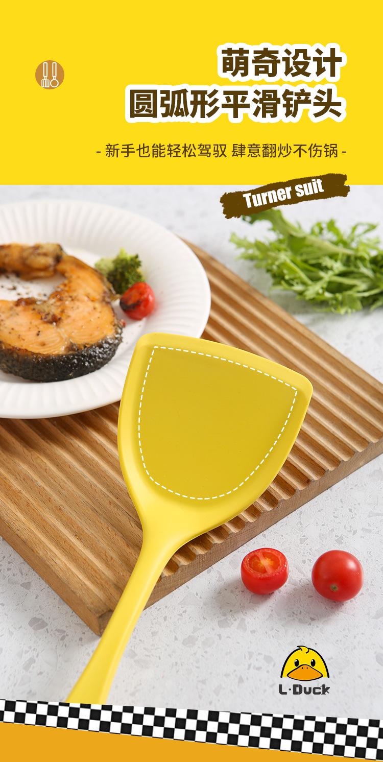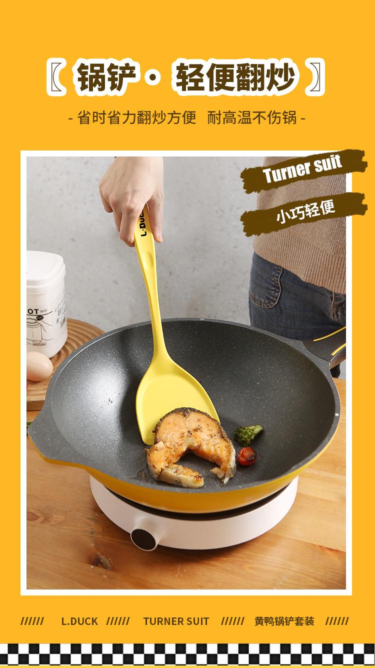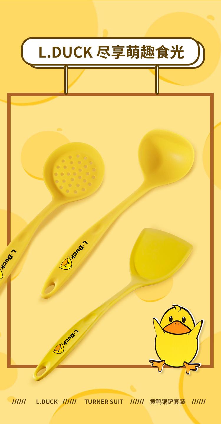 L.DUCK amarelo DUCK pá de silicone pá especial antiaderente pá de panela de alta temperatura resistente a alimentos domésticos de grau alimentício pá de cozimento conjunto de colher
