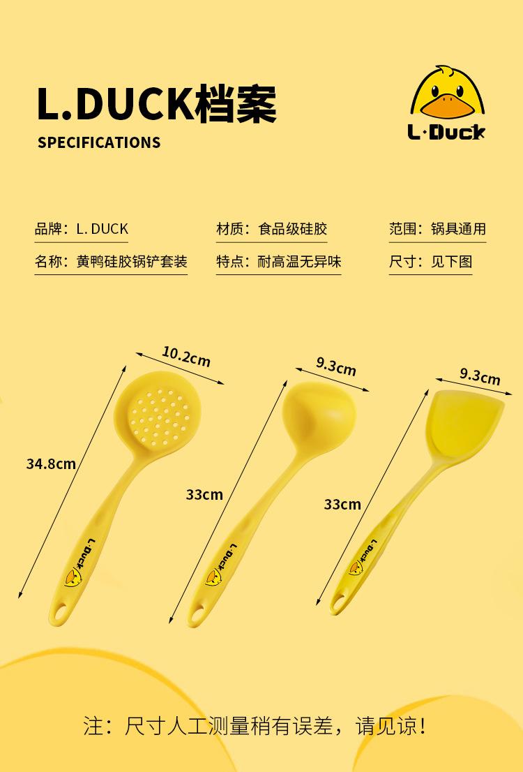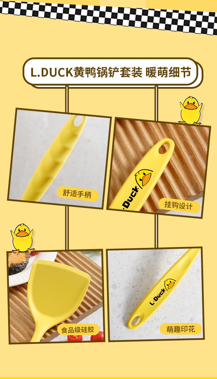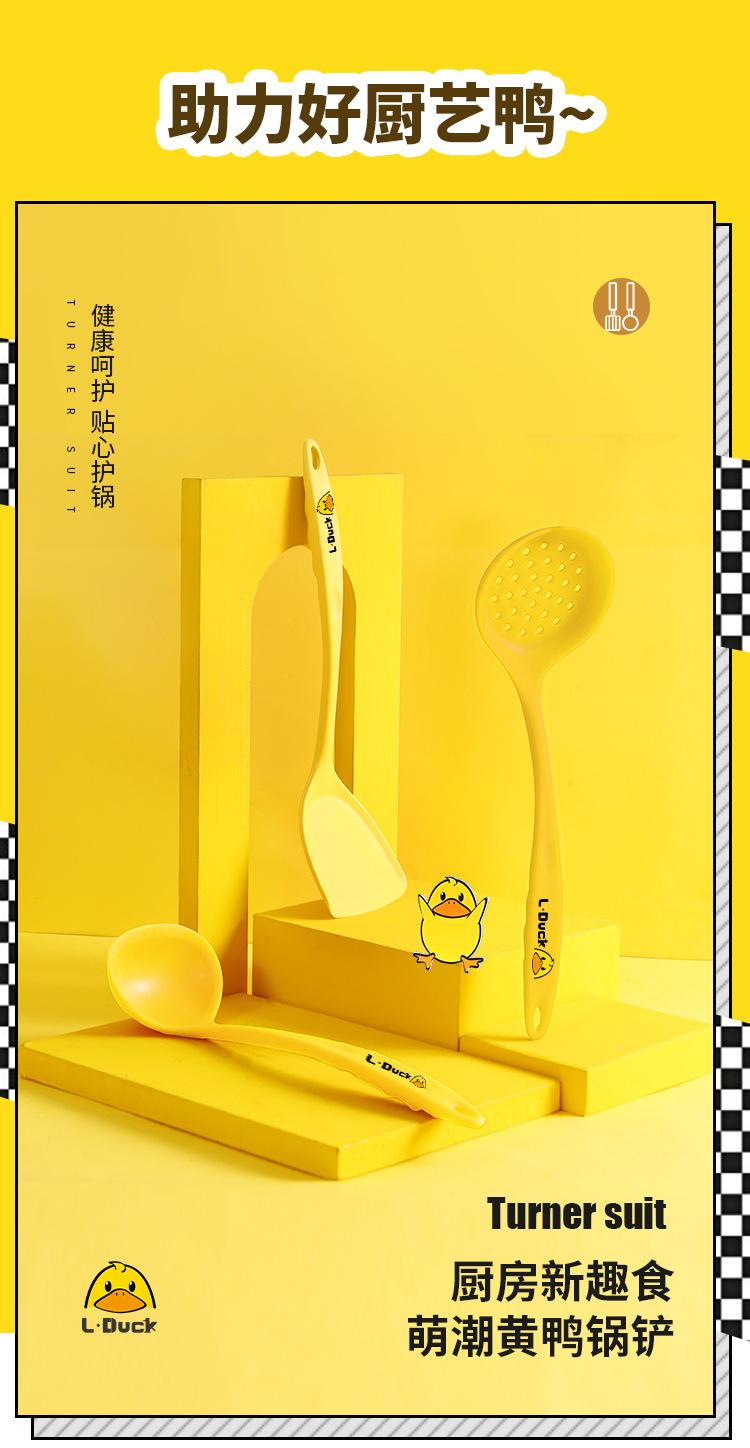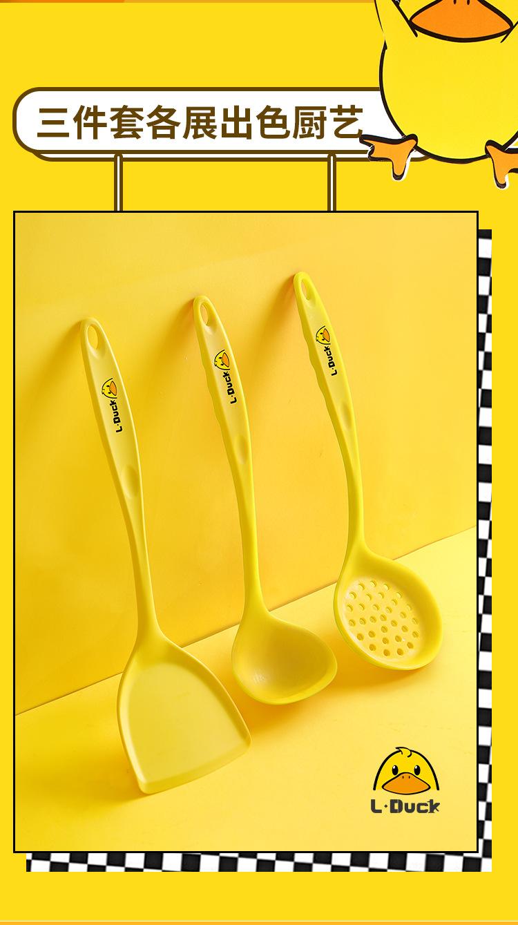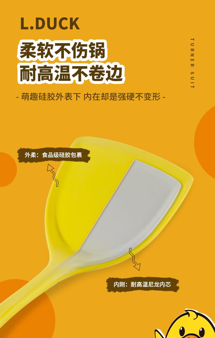 L.DUCK amarelo DUCK pá de silicone pá especial antiaderente pá de panela de alta temperatura resistente a alimentos domésticos de grau alimentício pá de cozimento conjunto de colher