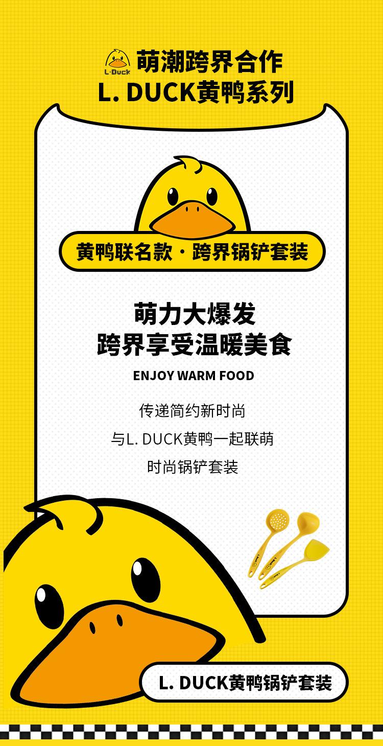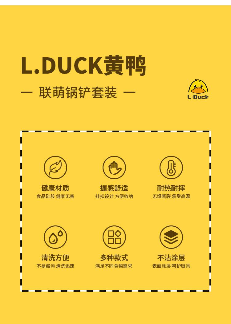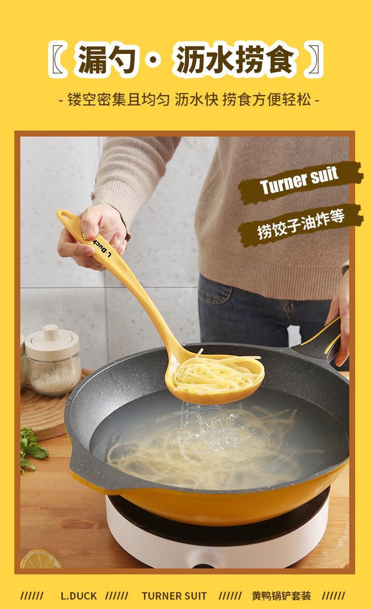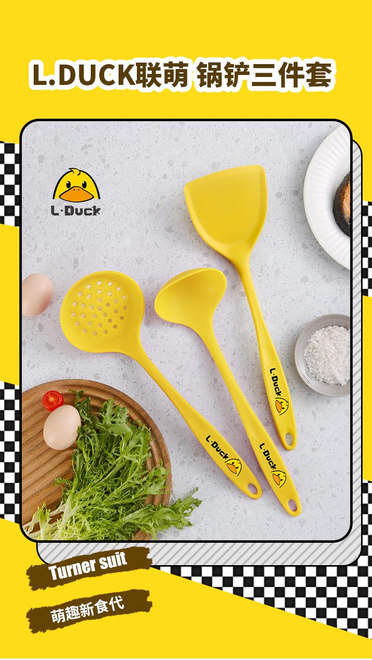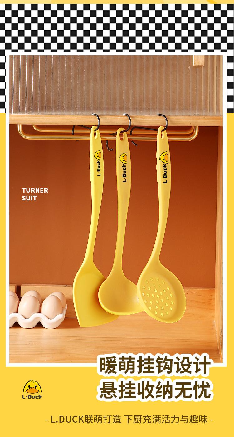 L.DUCK amarelo DUCK pá de silicone pá especial antiaderente pá de panela de alta temperatura resistente a alimentos domésticos de grau alimentício pá de cozimento conjunto de colher