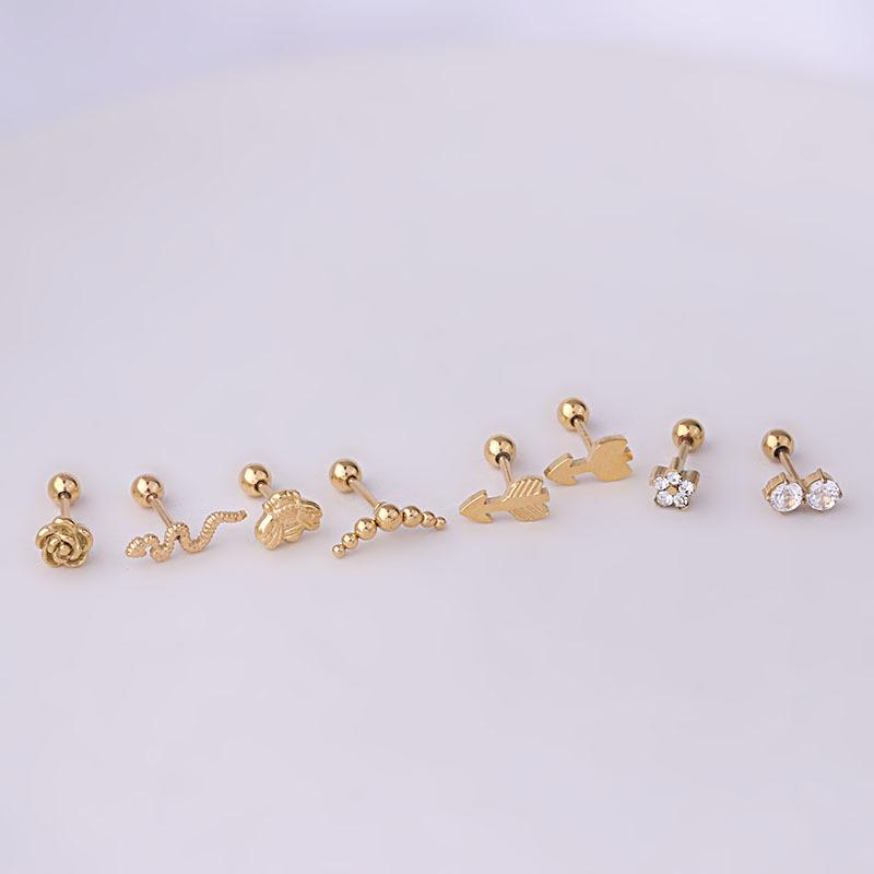 | Nome do Produto | 20g de aço inoxidável puro flor cobra orelha osso prego parafuso bola brincos personalidade elegante europeu e americano comércio exterior brincos piercing |